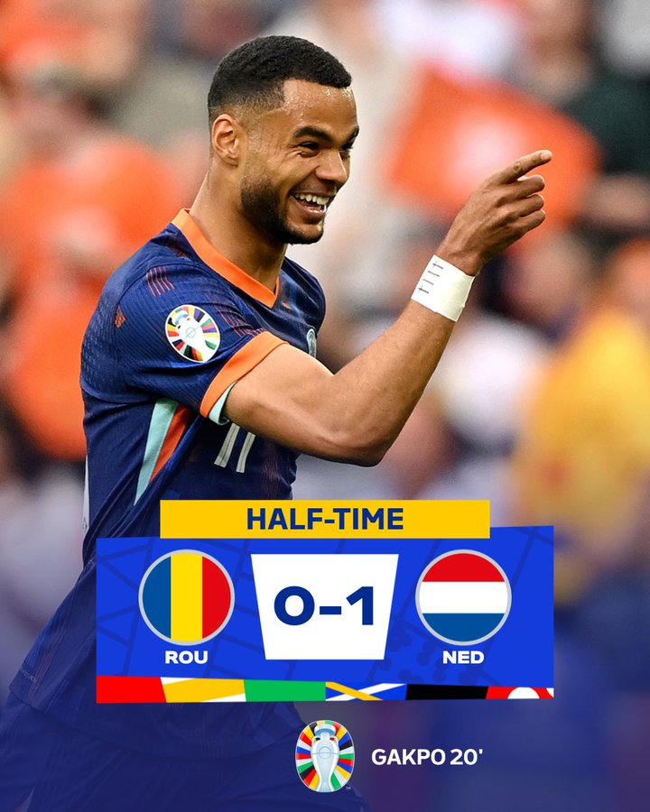 Phút 20, đội tuyển Hà Lan có bàn thắng rất đẹp của Gakpo với cú sút đầy uy lực. Gakpo đã có pha đi bóng nhanh ở cánh trái rồi ngoặt vào trong trước khi dứt điểm như búa bổ ở góc hẹp. 1-0 cho Hà Lan