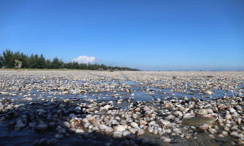Do ảnh hưởng của mưa bão, sò lông dạt trắng bờ biển ở Hà Tĩnh