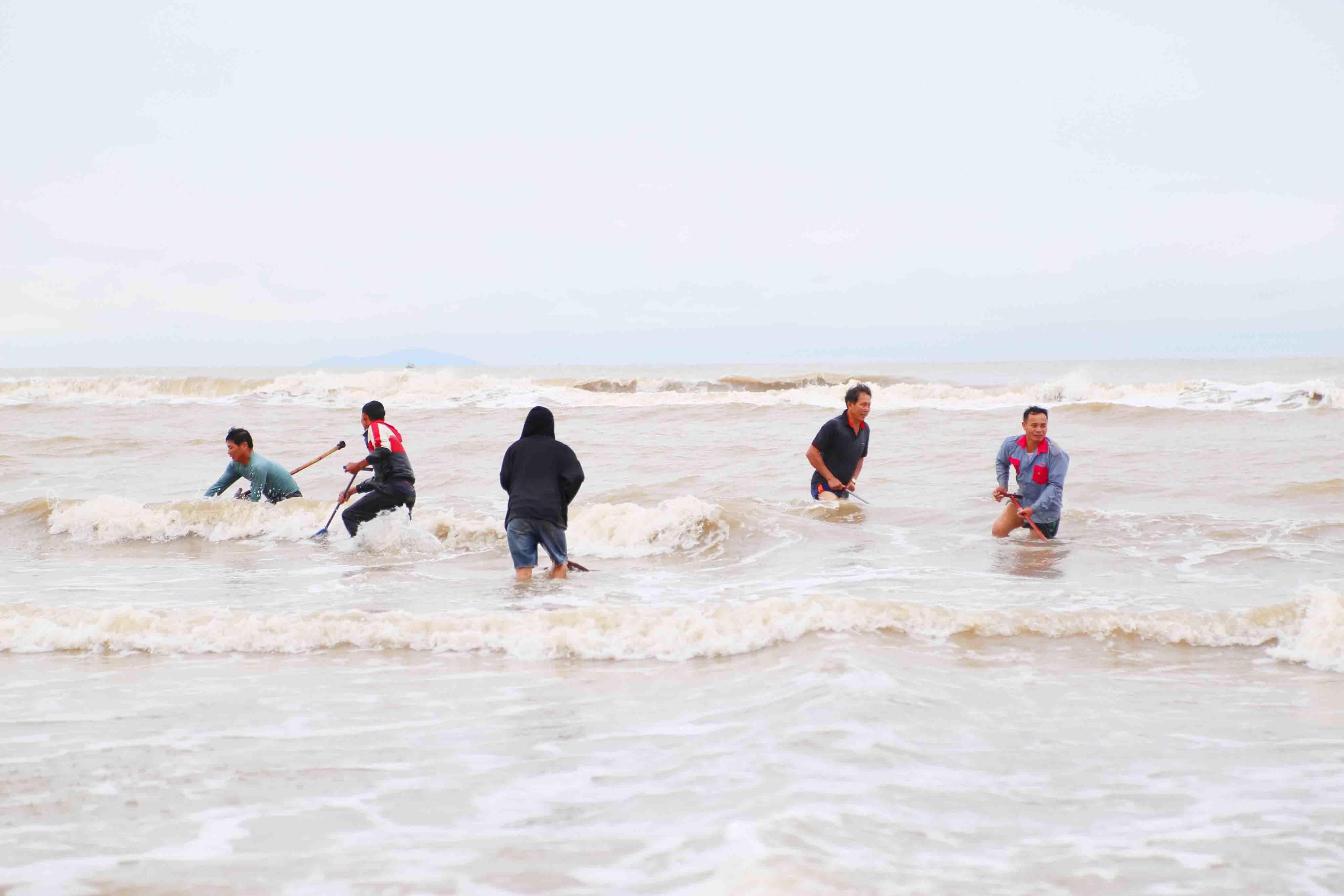 Một số người mang vợt sắt ra ngoài biển, nơi có độ sâu vừa phải, để vợt sò