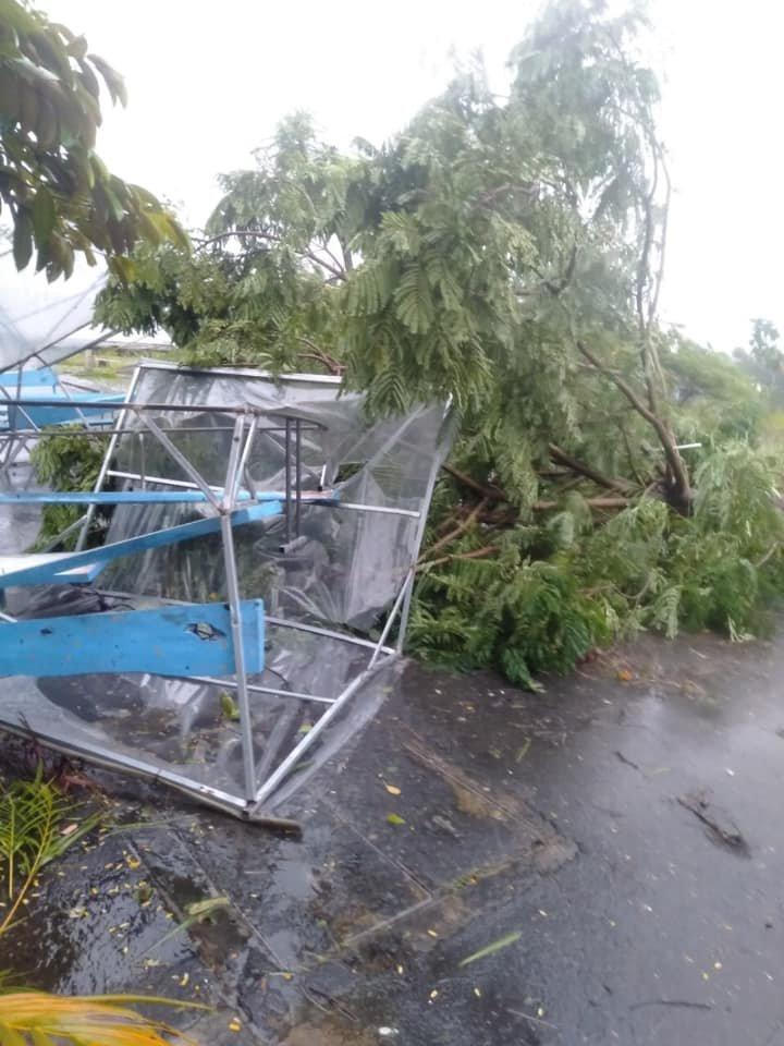 “Trận lốc xoáy rất mạnh, quét qua khoảng vài giây, rất nhiều nhà trong thôn bị tốc mái, hư hỏng, có 4 trụ điện bị gãy đổ và nhiều cây trồng bị quật ngã”, anh Tin kể lại.
