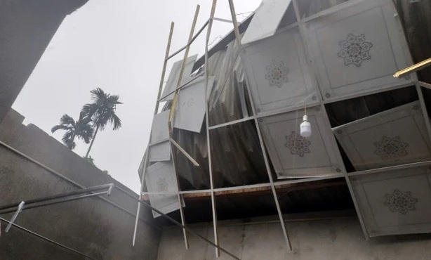 Cùng thời điểm, trận lốc xoáy cũng làm bay và hư hỏng một phần mái che bằng nhựa của Trường Tiểu học xã Sơn Hàm.