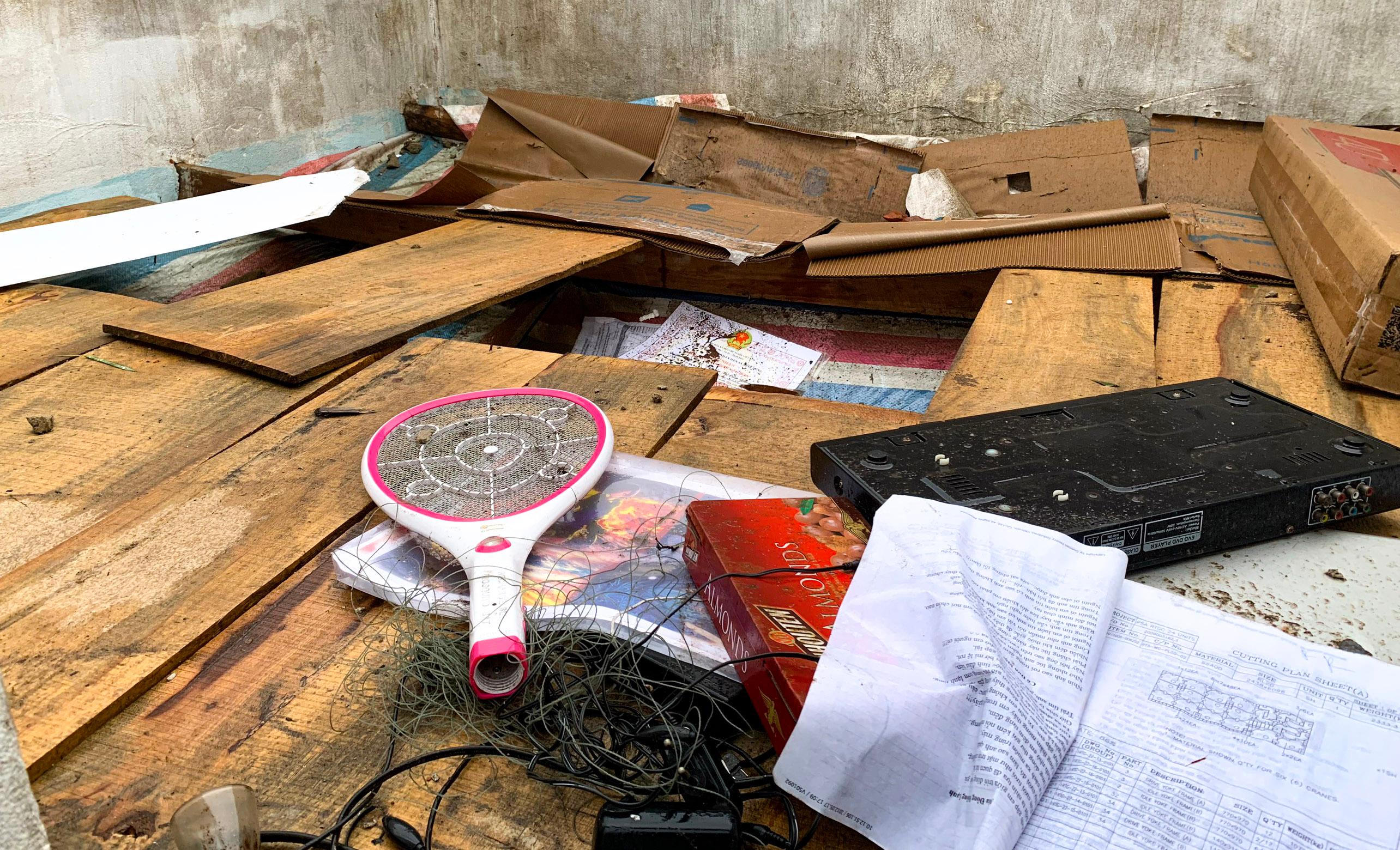 Nhiều đồ dùng trong nhà bị mưa ướt. |