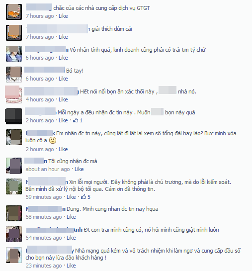 “Vinaphone nên xem lại ngay cách kinh doanh của mình ! Sao lại nhẫn tâm quảng cáo, thu lợi nhuận trên nỗi đau của người khác như thế này. Tôi thực sự phẫn nộ khi nhận được tin nhắn quảng cáo với nội dung như thế này của Vinaphone; mong là tin giả nhưng đáng tiếc lại là thật ! Không thể kinh doanh trên nỗi đau của đồng loại”. –Một khách hàng thẳng thắn.