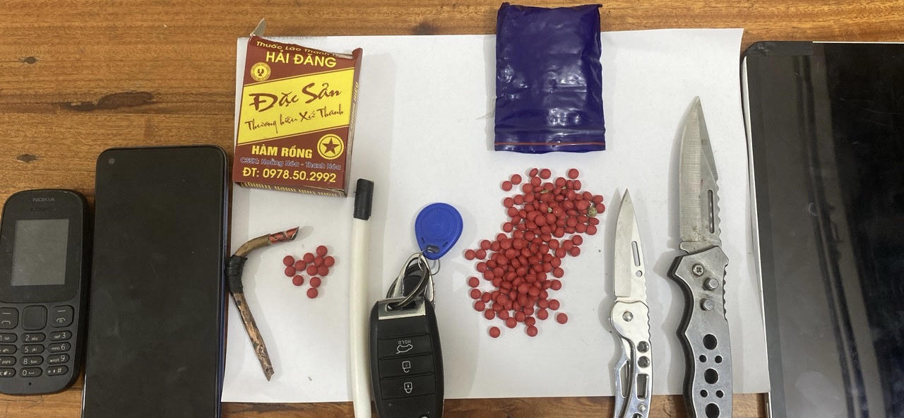 Tại hiện trường, tổ công tác 373 thu giữ 256 viên ma túy tổng hợp, 05 điện thoại di động, 03 dao bấm các loại, 01 xe ô tô.
