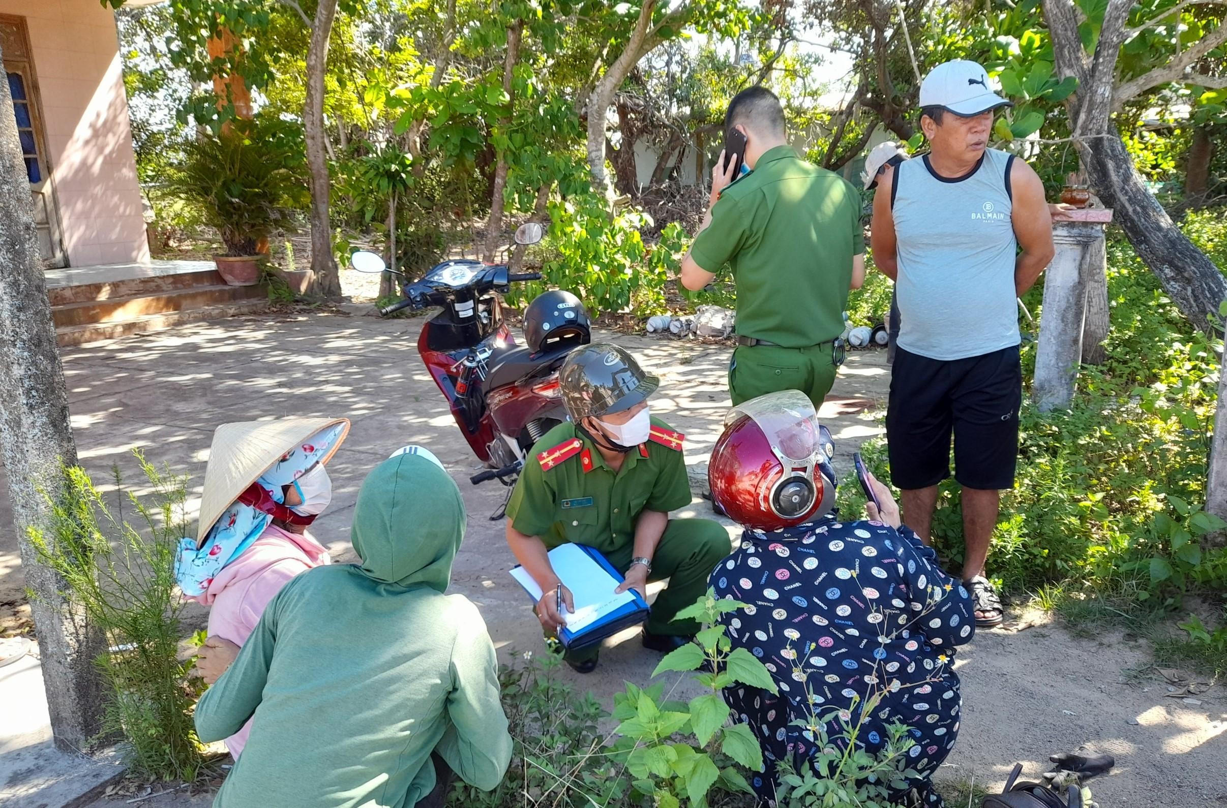 Công an lấy thông tin từ các nhân chứng tại hiện trường vụ án mạng. |