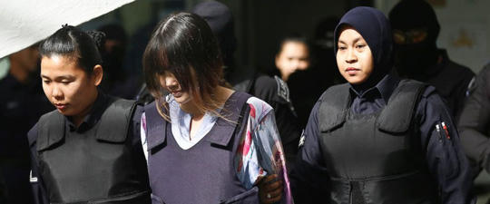 Hai người phụ nữ Siti Aisyah và Đoàn Thị Hương (Việt Nam) bị cáo buộc tội giết người. Các công tố viên nói rằng 2 người phụ nữ này đã bôi chất độc thần kinh VX lên mặt ông Kim Jong-nam tại sân bay quốc tế Kuala Lumpur vào ngày 13-2-2017.