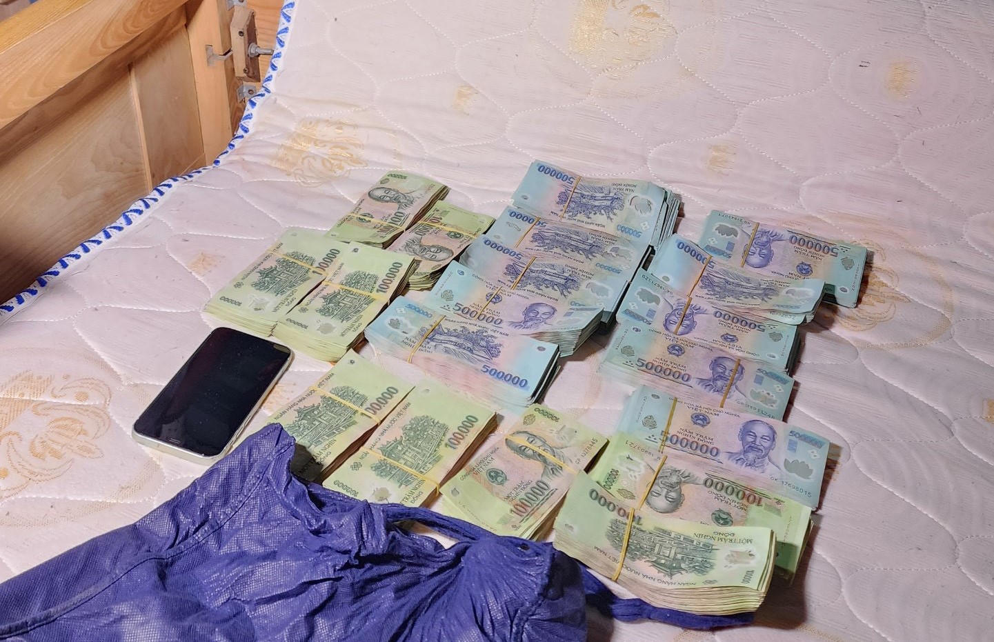 Qua khám xét, cảnh sát đã thu hồi được số tiền 590 triệu đồng, phần lớn là số tiền Cao cướp được nhưng chưa kịp tẩu tán.