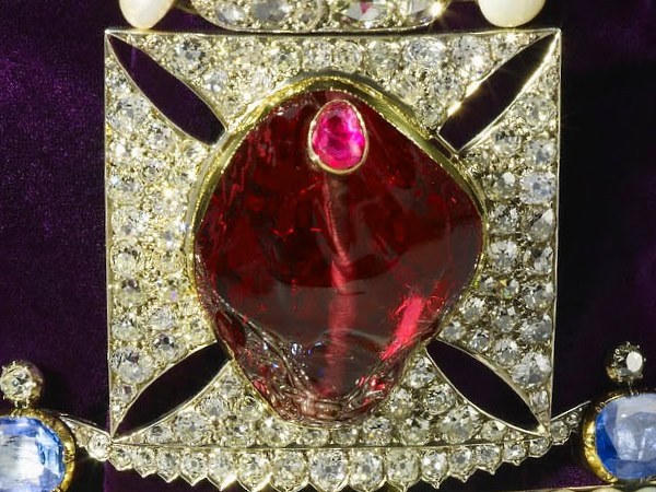 Hồng ngọc Hắc Thái Tử không phải là một viên hồng ngọc lớn, mà là một hạt Spinel lớn: một thứ khoáng chất cứng, lấp lánh được kết tinh thành nhiều hình dạng khác nhau. Đá Spinel không giá trị bằng hồng ngọc. Viên đá giả hồng ngọc này được cho là lấy từ mỏ Badakshan (ngày nay là Tajikistan) được nhắc đến vào thế kỷ 14, lọt vào tay của Don Pedro “Bạo ngược”, nhà cai trị xứ Seville (Tây Ban Nha).