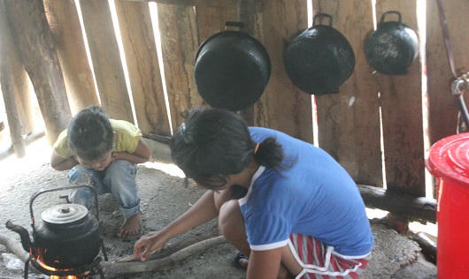 Mặt trời đứng bóng quá cây sào sau nhà báo hiệu đã xế trưa nhưng Nguyễn Văn Tựa (20 tuổi, người Tà Ôi, trú tại xã Hồng Quảng, huyện A Lưới, tỉnh Thừa Thiên Huế) đi rẫy vẫn chưa về. Trong căn nhà được che chắn bằng ván gỗ khá tạm bợ, vợ của Tựa là Trần Thị Lễ (20 tuổi) đang ngồi cho con ăn.