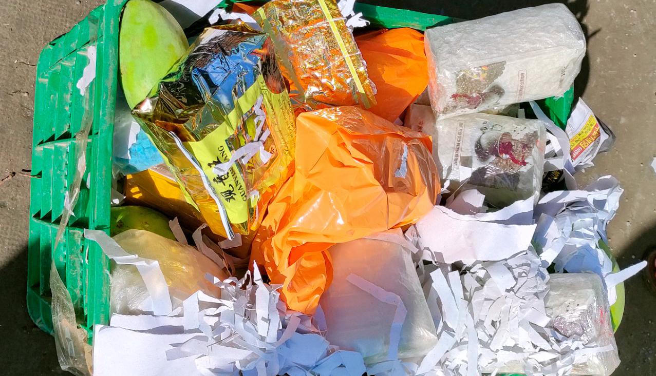 Tạng vật được giấu trong sọt xòai |