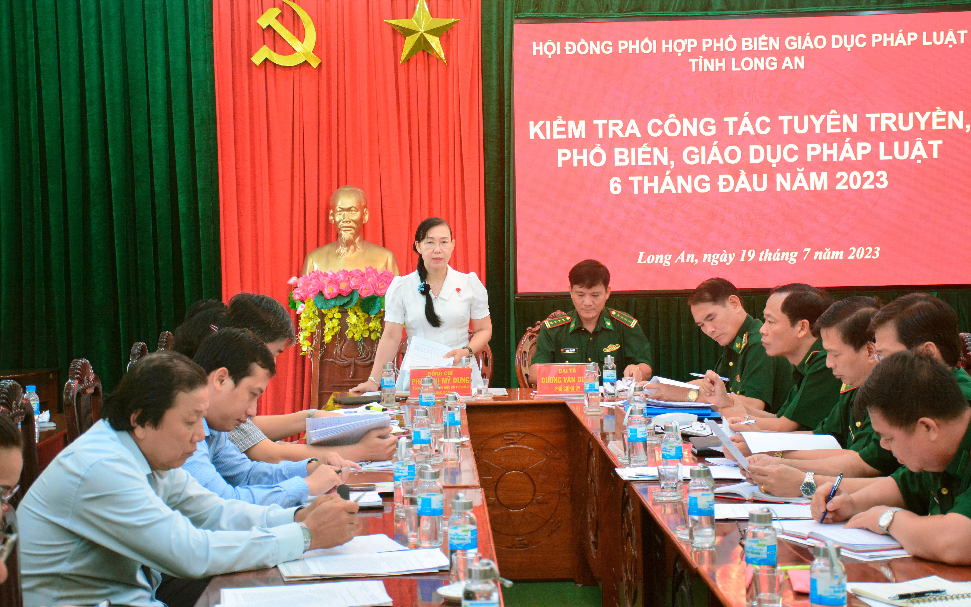 Thông tin với đoàn kiểm tra, Bộ Chỉ huy BĐBP tỉnh Long An cho biết, trong 6 tháng đầu năm toàn lực lượng tổ chức tuyên truyền PBGDPL tập trung được 284 buổi/7.113 lượt người tham dự; tuyên truyền nhỏ lẻ được 191 buổi/5.613 lượt người nghe. Đồng thời, các đơn vị thực hiện nghiêm các mô hình như “tổ 3 người”, “mỗi tuần một câu hỏi, một đáp án”, “mỗi tuần học một điều luật”, “tổ tư vấn pháp lý” và tổ chức tốt hoạt động ngày pháp luật gắn với sinh hoạt ngày chính trị, văn hóa tinh thần hàng tháng.