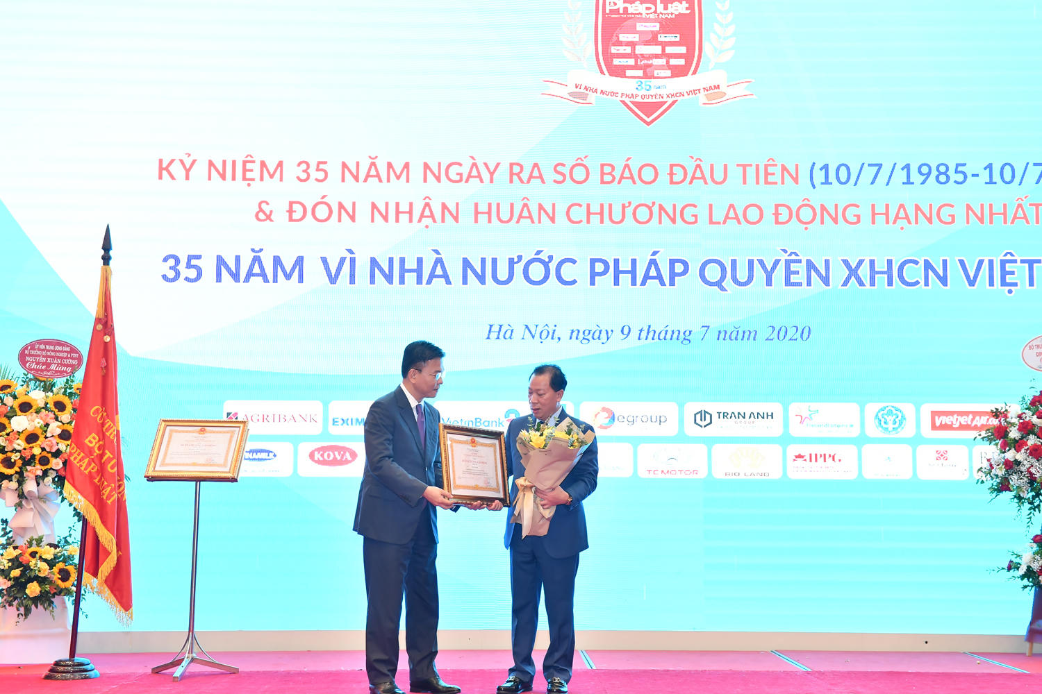 Điểm lại những kết quả mà báo PLVN đã đạt được, Bộ trưởng khẳng định, "với những đóng góp thiết thực như trên, Báo Pháp luật Việt Nam đã nhận được nhiều phần thưởng cao quý của Đảng và Nhà nước, của Bộ Tư pháp cho tập thể và nhiều cá nhân thuộc Báo. Và hôm nay, Báo Pháp luật Việt Nam vinh dự được Chủ tịch nước tặng thưởng Huân chương Lao động hạng Nhất lần thứ 2 - một phần thưởng cao quý ghi nhận công lao đóng góp vào công cuộc xây dựng và đổi mới đất nước do Đảng và Nhà nước trao tặng".