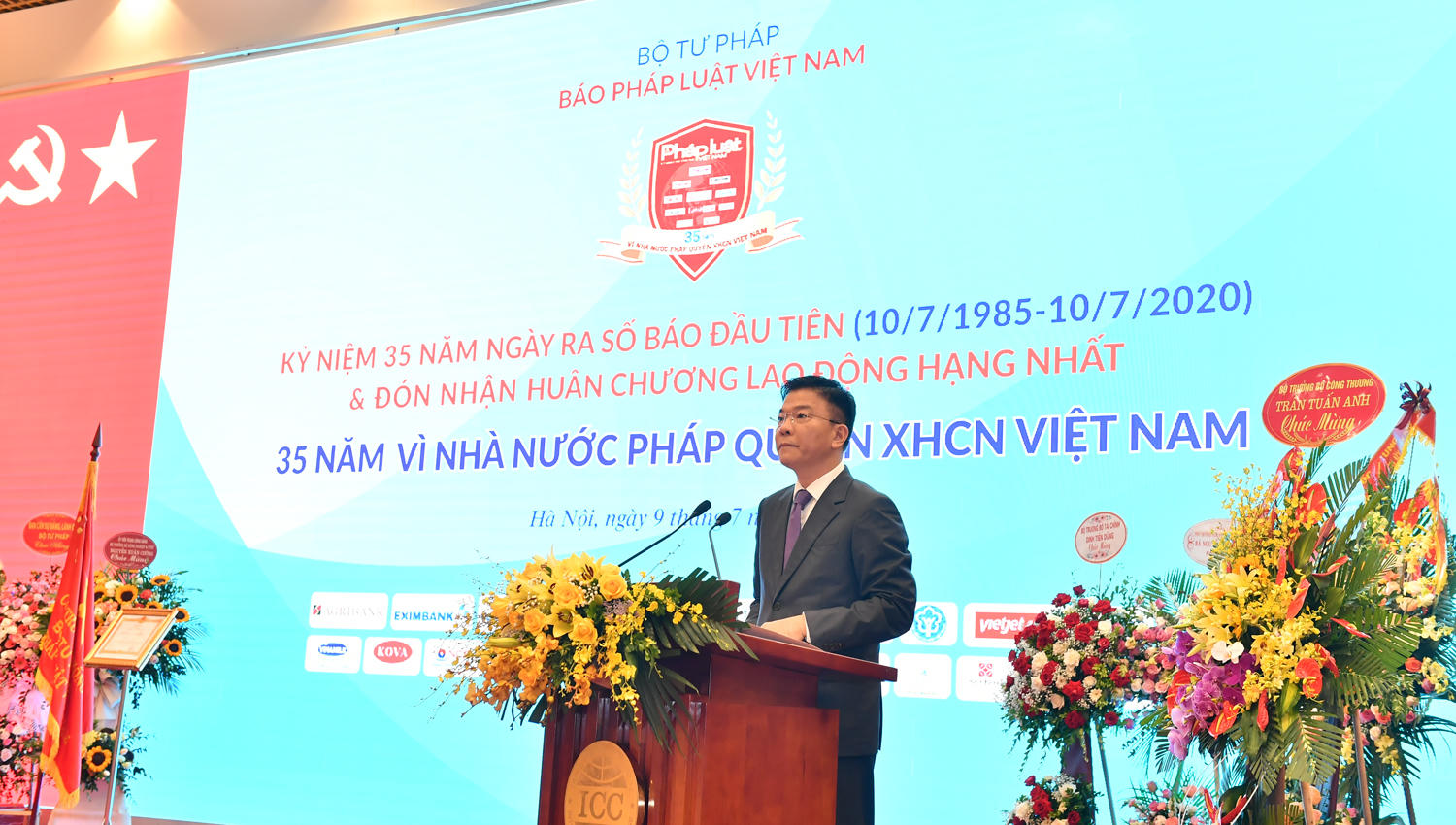 Bộ trưởng Lê Thành Long tin tưởng, “Với những đóng góp trong 35 năm qua, đội ngũ cán bộ, công chức, viên chức, phóng viên, biên tập viên, người lao động của Báo PLVN sẽ phát huy truyền thống, không ngừng sáng tạo, bồi đắp lòng yêu ngành, yêu nghề, khắc phục mọi khó khăn để làm tốt vai trò cơ quan ngôn luận của Bộ Tư pháp, là tờ báo được Đảng tin, dân yêu, doanh nghiệp đồng hành, tiếp tục góp phần tích cực xây dựng Nhà nước pháp quyền Việt Nam xã hội chủ nghĩa."