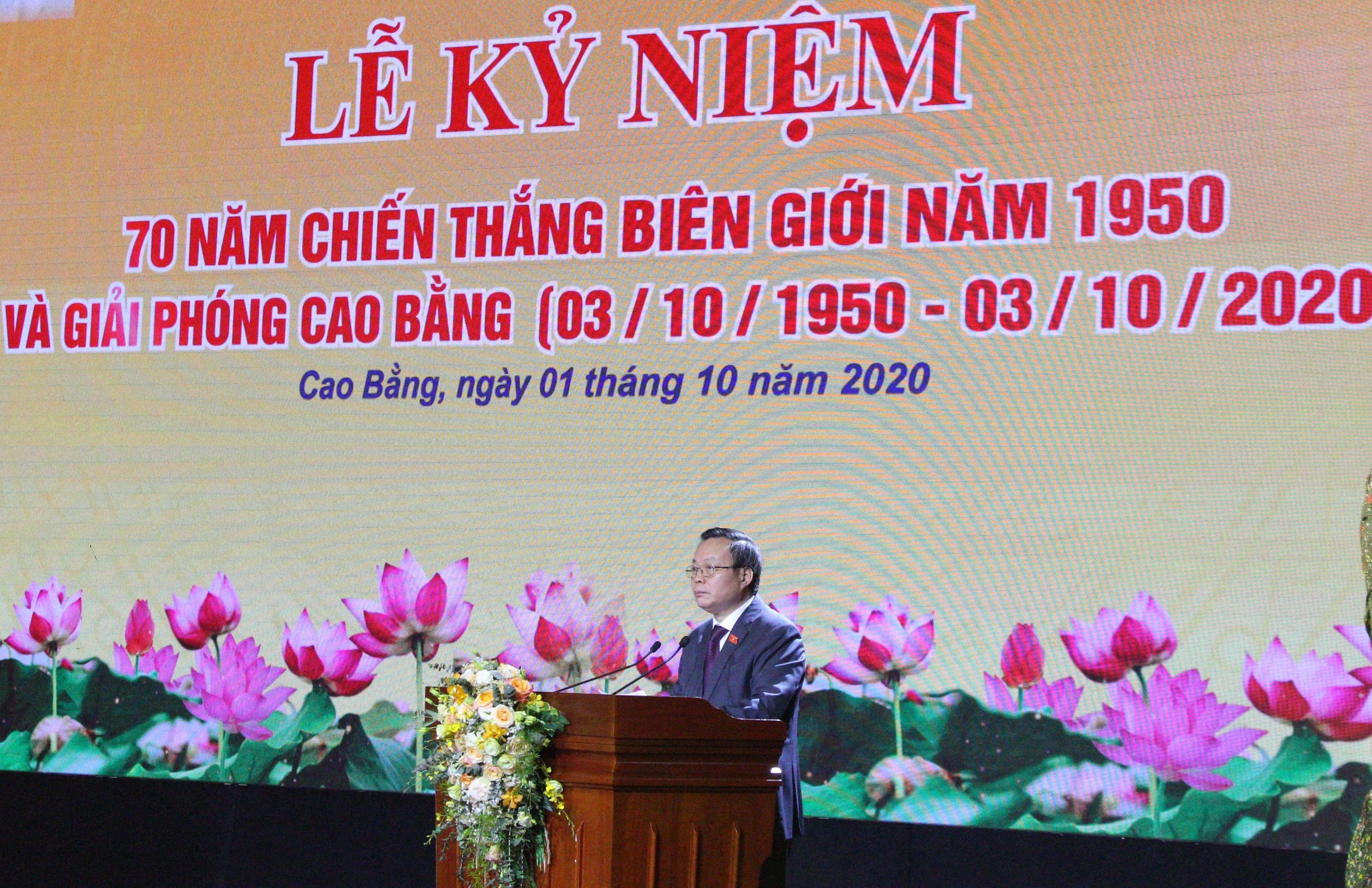 Phát biểu tại buổi lễ đồng chí Phùng Quốc Hiển, Uỷ viên TƯ Đảng, Phó Chủ tịch Quốc hội nhiệt liệt chúc mừng và biểu dương những thành tựu to lớn mà Đảng bộ, chính quyền và nhân dân các dân tộc tỉnh Cao Bằng đã đạt được trong 70 năm qua.