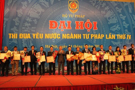 Sau khi nghe tham luận và giao lưu cùng một số tập thể, cá nhân điển hình tiên tiến, Đại hội đã công bố Quyết định và trao Huân chương Lao động các hạng cho các tập thể, cá nhân, Quyết định công nhận và trao tặng Bằng khen cho đại diện các tập thể, cá nhân điển hình tiên tiến ngành Tư pháp giai đoạn 2010-2015.