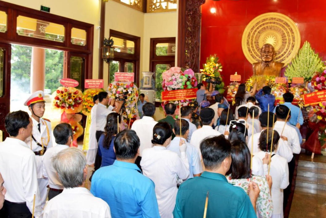 Tại buổi lễ, các đại biểu tham dự đã cùng ôn lại lịch sử quá trình hoạt động cách mạng và thành kính dâng hoa, dâng hương tưởng nhớ Chủ tịch Tôn Đức Thắng - nhà lãnh đạo mẫu mực, người cộng sản kiên trung, người bạn chiến đấu thân thiết của Chủ tịch Hồ Chí Minh vĩ đại, tấm gương đạo đức cách mạng sáng ngời - suốt đời phấn đấu, hy sinh vì sự nghiệp đấu tranh giải phóng dân tộc, thống nhất đất nước, xây dựng và bảo vệ Tổ quốc Việt Nam xã hội chủ nghĩa.