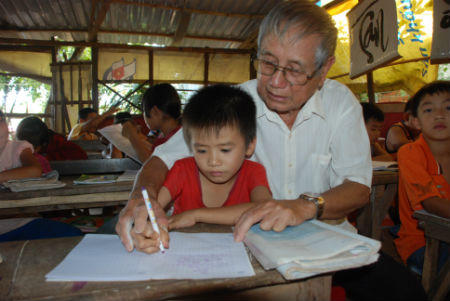 (PLO) - Hơn 8 năm hoạt động, lớp học đặc biệt không có tên gọi ấy chưa từng có giấy khen, cũng không ồn ào, náo nhiệt tiếng trống khai giảng. Ở đó, ngày ngày người ta chỉ thấy ông giáo già Ngô Tùng Bích (74 tuổi) cần mẫn, kiên trì uốn từng nét chữ, chỉ dạy từng phép tính cho những đứa học trò đen nhẻm, gầy gò.
