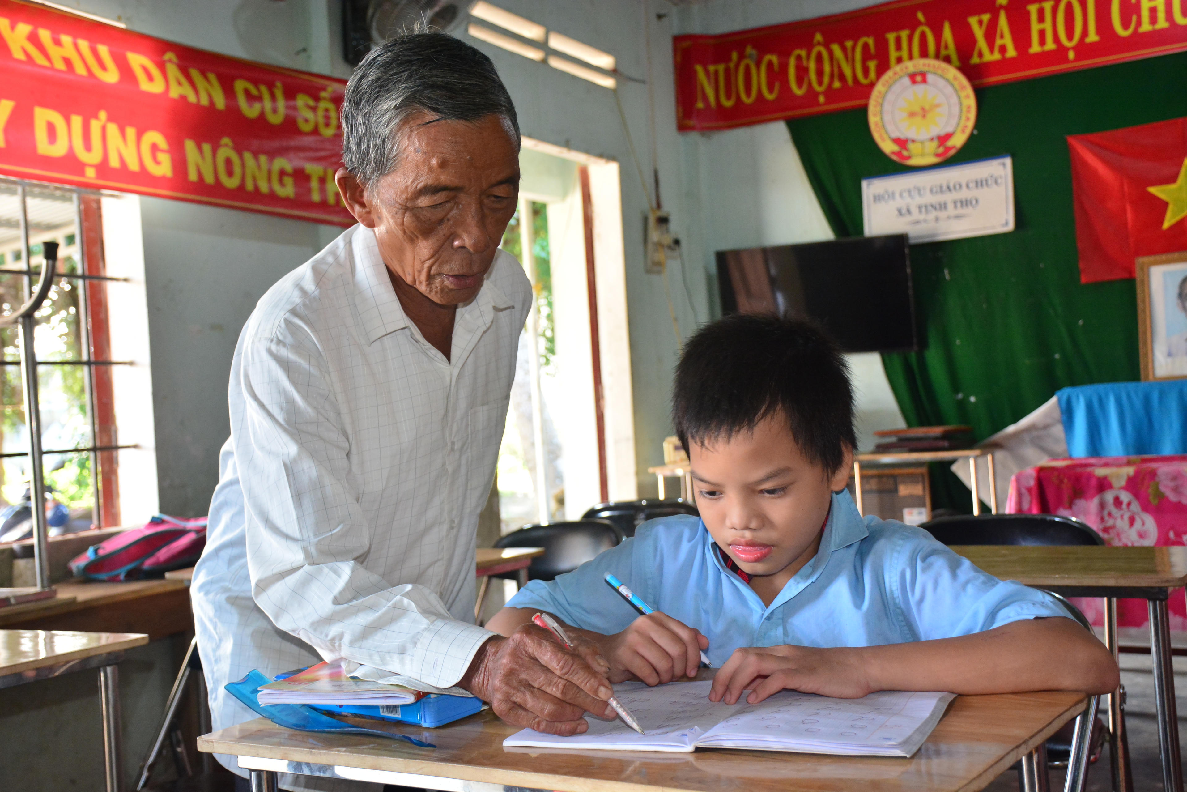 Thầy Trần Đình Vương - Chủ tịch Hội cựu giáo chức xã Tịnh Thọ (huyện Sơn Tịnh, tỉnh Quảng Ngãi) chia sẻ đã tham gia giảng dạy xuyên suốt trước và sau ngày giải phóng trên mảnh đất Tịnh Thọ. Về hưu nhưng chưa khép lại giáo án, năm 2012, thương nhiều trẻ em nghèo, khuyết tật ở địa phương mình không biết chữ, thầy Vương quyết định mở lớp học tình thương này và vận động các đồng nghiệp cùng tham gia.
