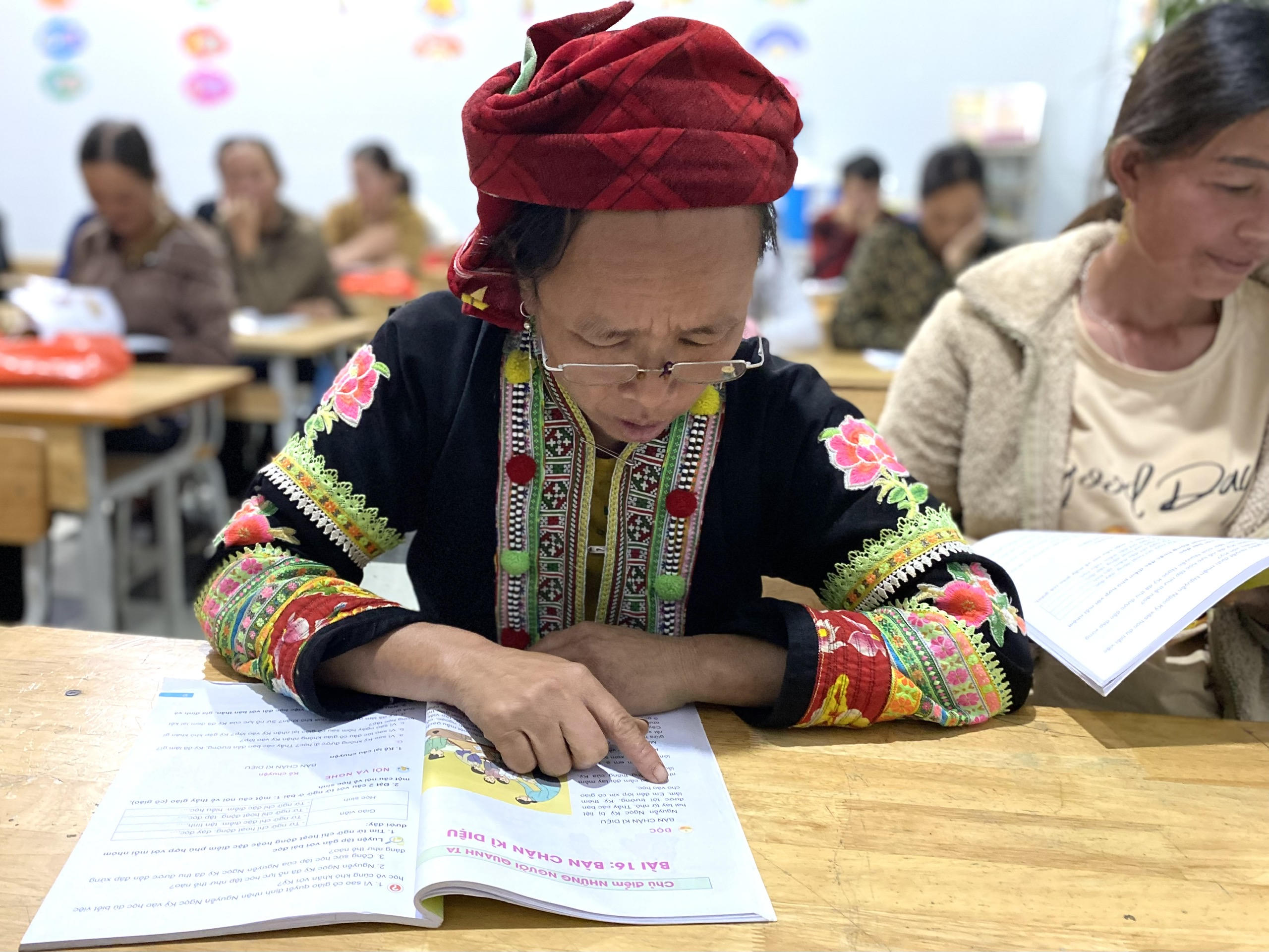Nhiều tháng nay, cứ vào buổi tối, lớp học xóa mù chữ Lản Nhì Thàng được mở tại Trường PTDTBT Tiểu học Lản Nhì Thàng (xã Lản Nhì Thàng, huyện Phong Thổ, tỉnh Lai Châu) luôn vang lên tiếng ê, a học chữ.