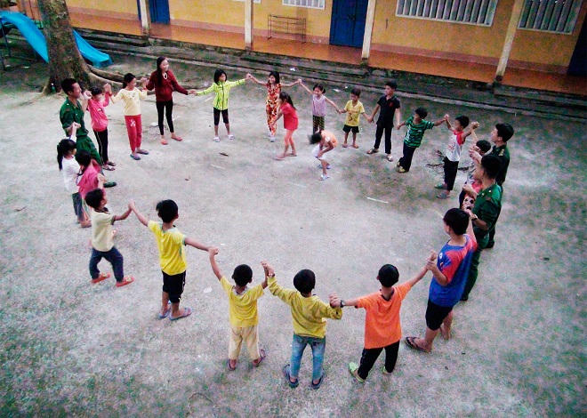 Lớp học “Tình thương” tổ chức tại Điểm phụ trường Tiểu học Tuyên Bình (huyện Vĩnh Hưng), đây cũng là điều kiện thuận lợi để thầy và trò giao lưu, vui chơi cùng các thầy, cô giáo, học sinh tiểu học duy trì lớp học theo chế độ, giờ giấc chính quy của Nhà trường.