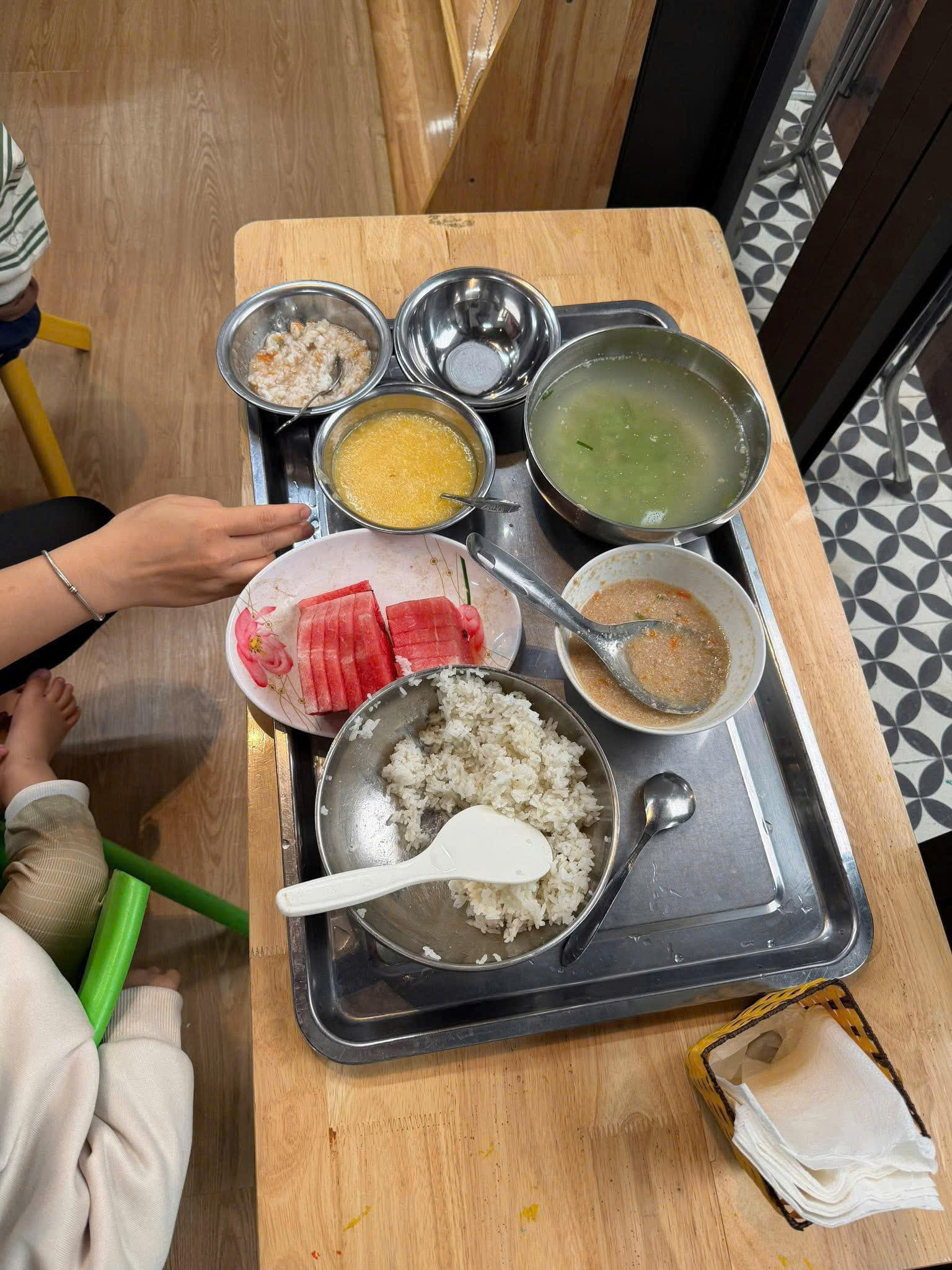 Theo phản ánh của phụ huynh L.A, từ khoảng tháng 11/2025 – thời điểm có sự thay đổi trong bộ phận quản lý – chất lượng bữa ăn của trẻ được cho là có dấu hiệu giảm sút. Cụ thể, phụ huynh cho rằng khẩu phần ăn của các cháu “nghèo nàn về dinh dưỡng”, chưa tương xứng với mức học phí và tiền ăn hơn 4 triệu đồng mỗi tháng mà gia đình đóng góp.