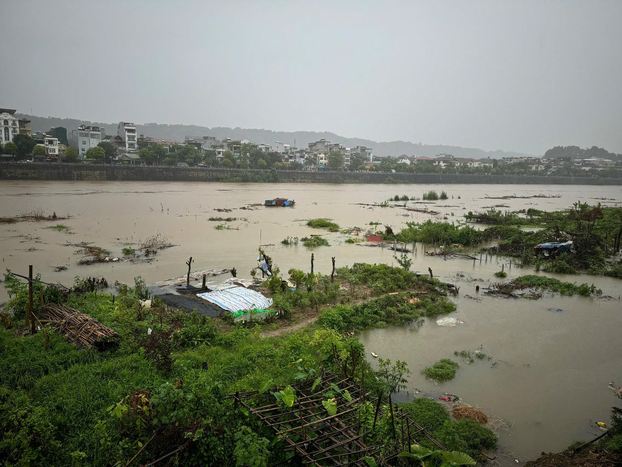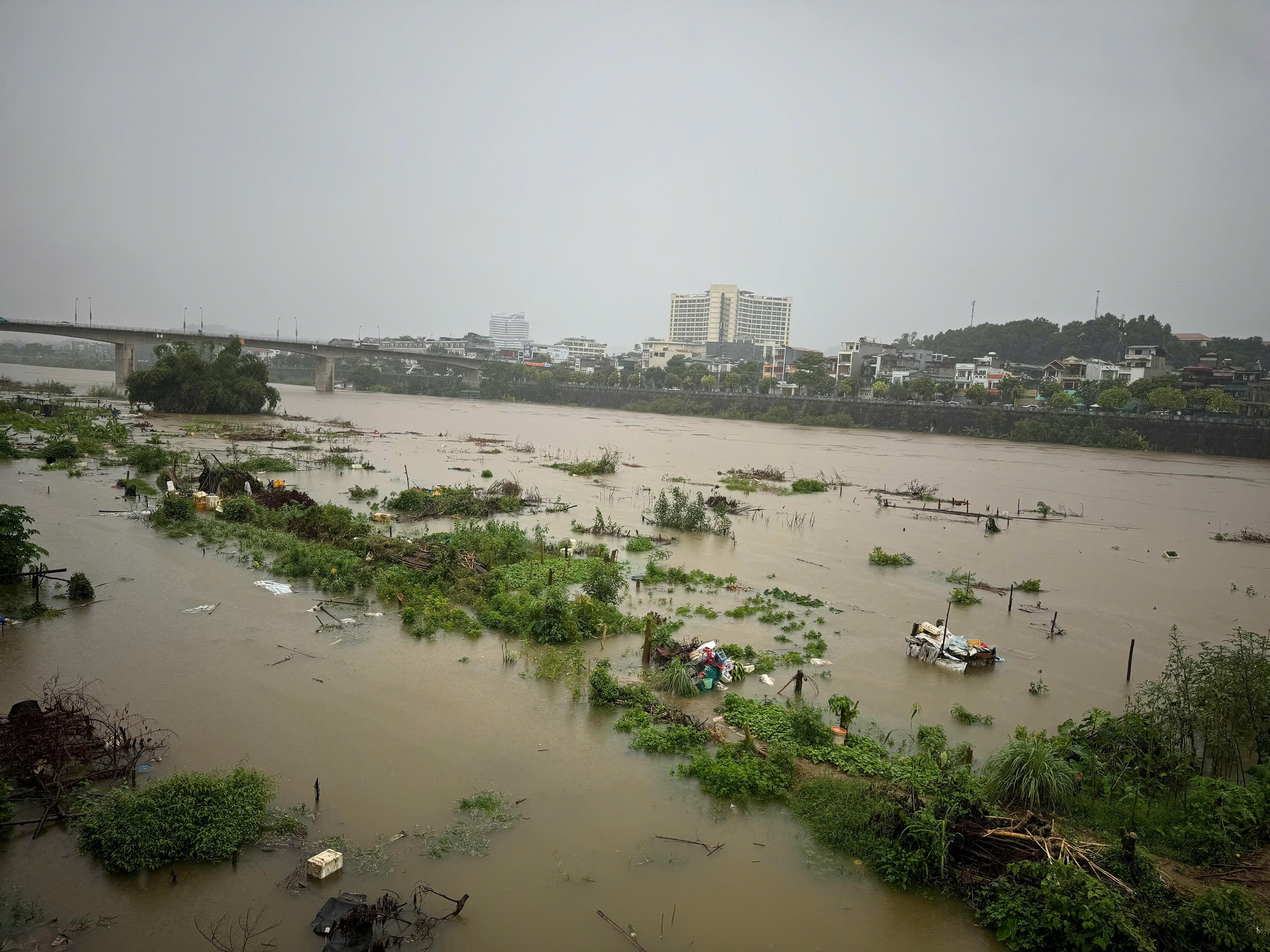 Hình ảnh lũ trên sông Hồng đoạn qua thành phố Lào Cai ngày 8/9: