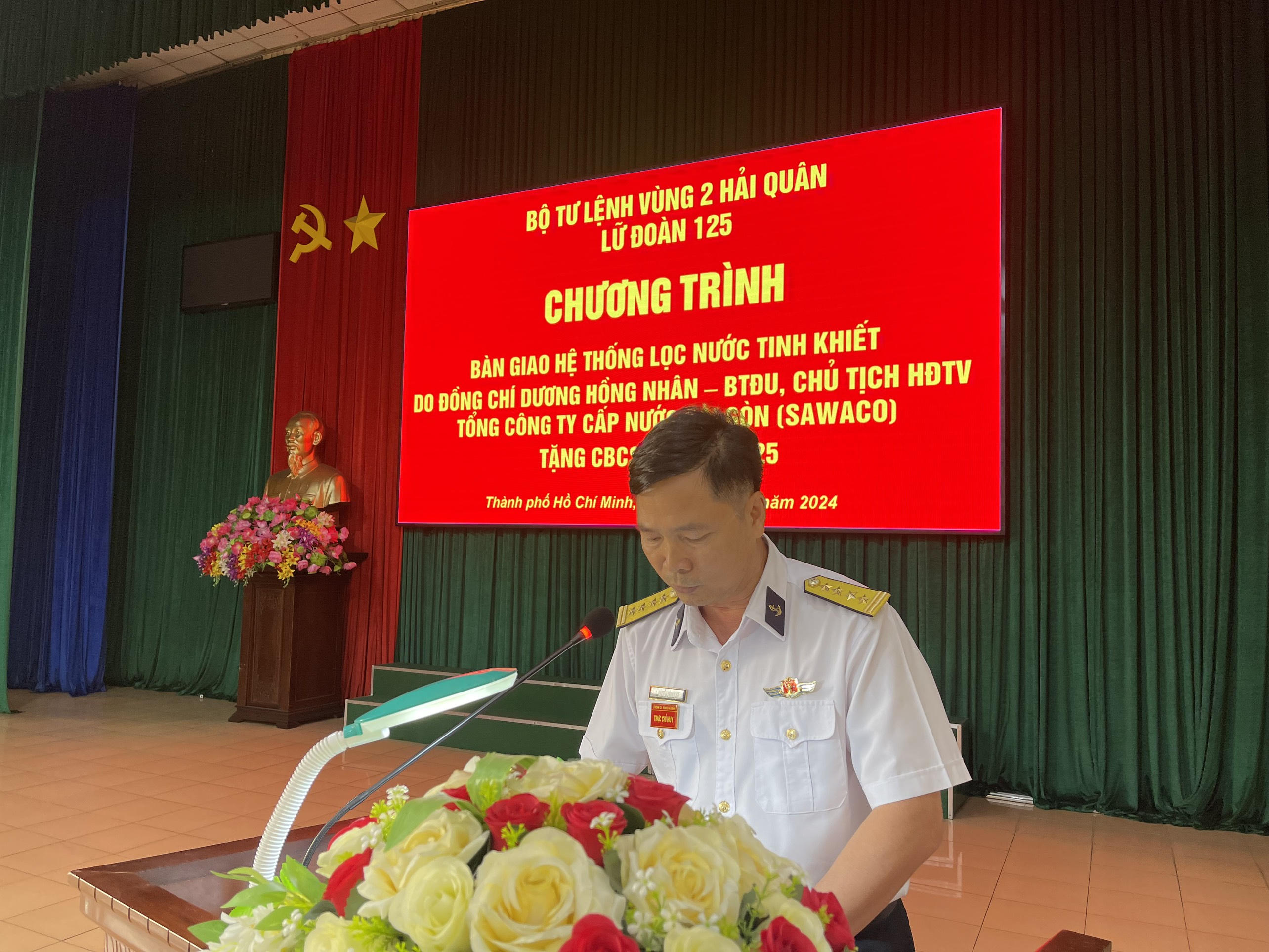 Thay mặt cán bộ, chiến sỹ Lữ đoàn 125, Đại tá Nguyễn Đình Lịch, Lữ đoàn trưởng Lữ đoàn 125 gửi lời cảm ơn ông Dương Hồng Nhân, Bí thư Đảng ủy – Chủ tịch Hội đồng thành viên SAWACO; các cơ quan dân chính đảng, chính quyền địa phương, doanh nhân, doanh nghiệp trên địa bàn Thành phố Hồ Chí Minh đã quan tâm, giúp đỡ Lữ đoàn 125 thời gian qua.