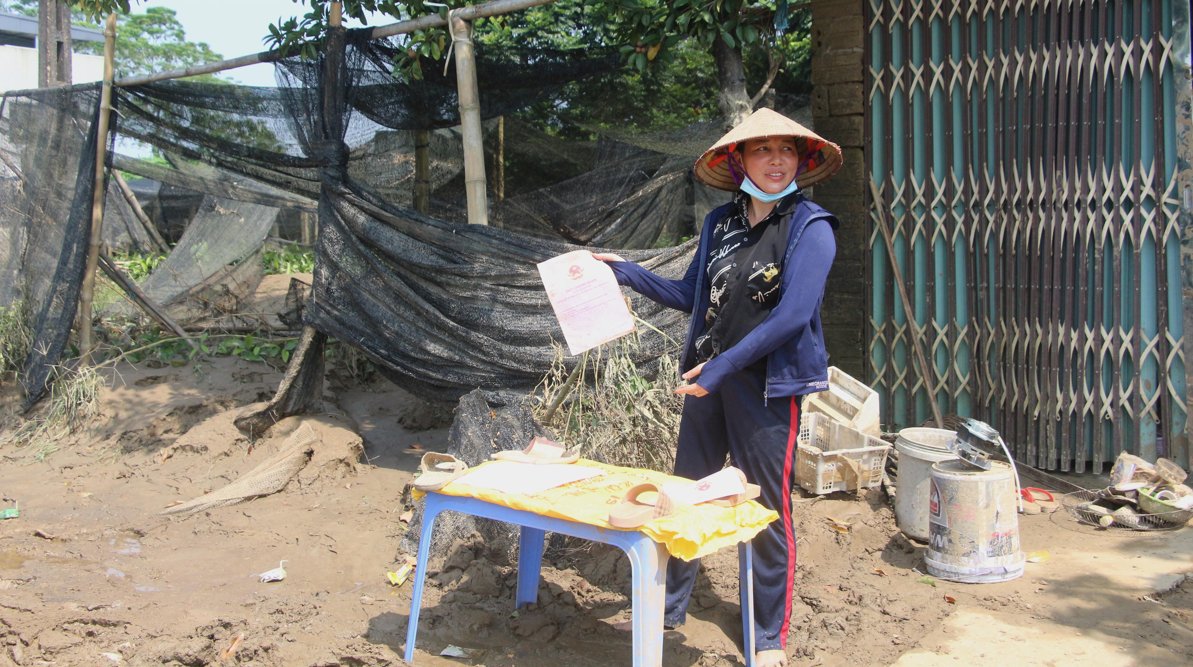 Tranh thủ trời hửng nắng, bà Cao Thị Đĩnh ở thôn 11 Tân Long (Báo Đáp - Trấn Yên) mang hồ sơ giấy tờ bị ngập nước ra hong khô. Ảnh: Đức Tuyển. |
