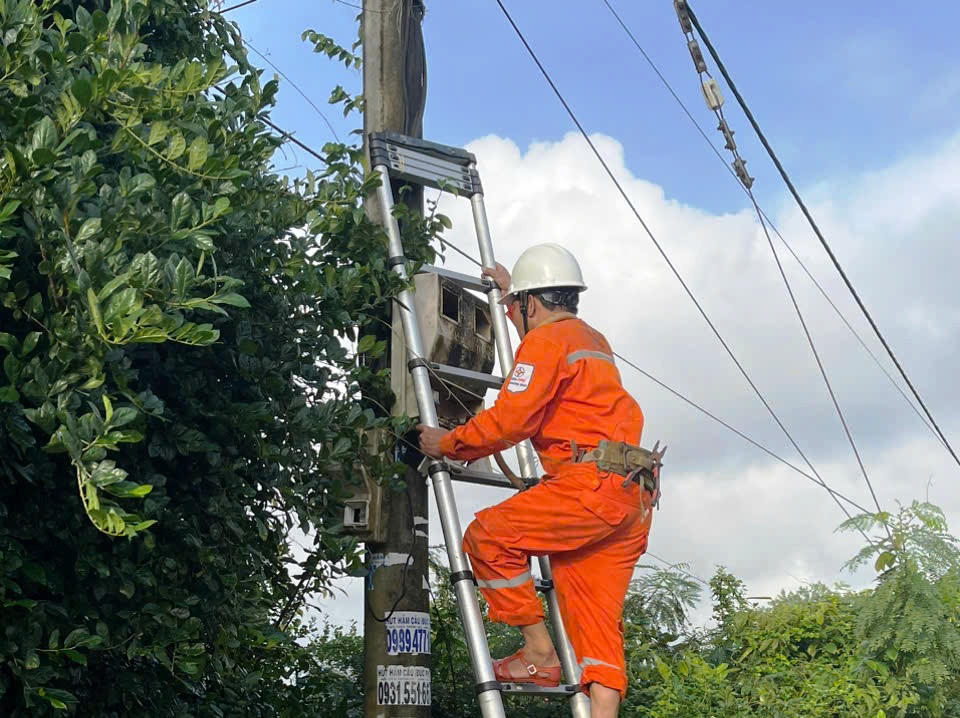 Nhân viên điện lực hỗ trợ người dân phường Phổ Minh |