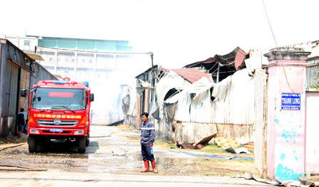Sau 3 giờ nỗ lực, chiều 14/2, lực lượng phòng cháy chữa cháy cơ bản khống chế được đám cháy xảy ra trên đường Nguyễn Thị Minh Khai, đoạn qua khu phố Tân Long, phường Tân Đông Hiệp, TX.Dĩ An, tỉnh Bình Dương.