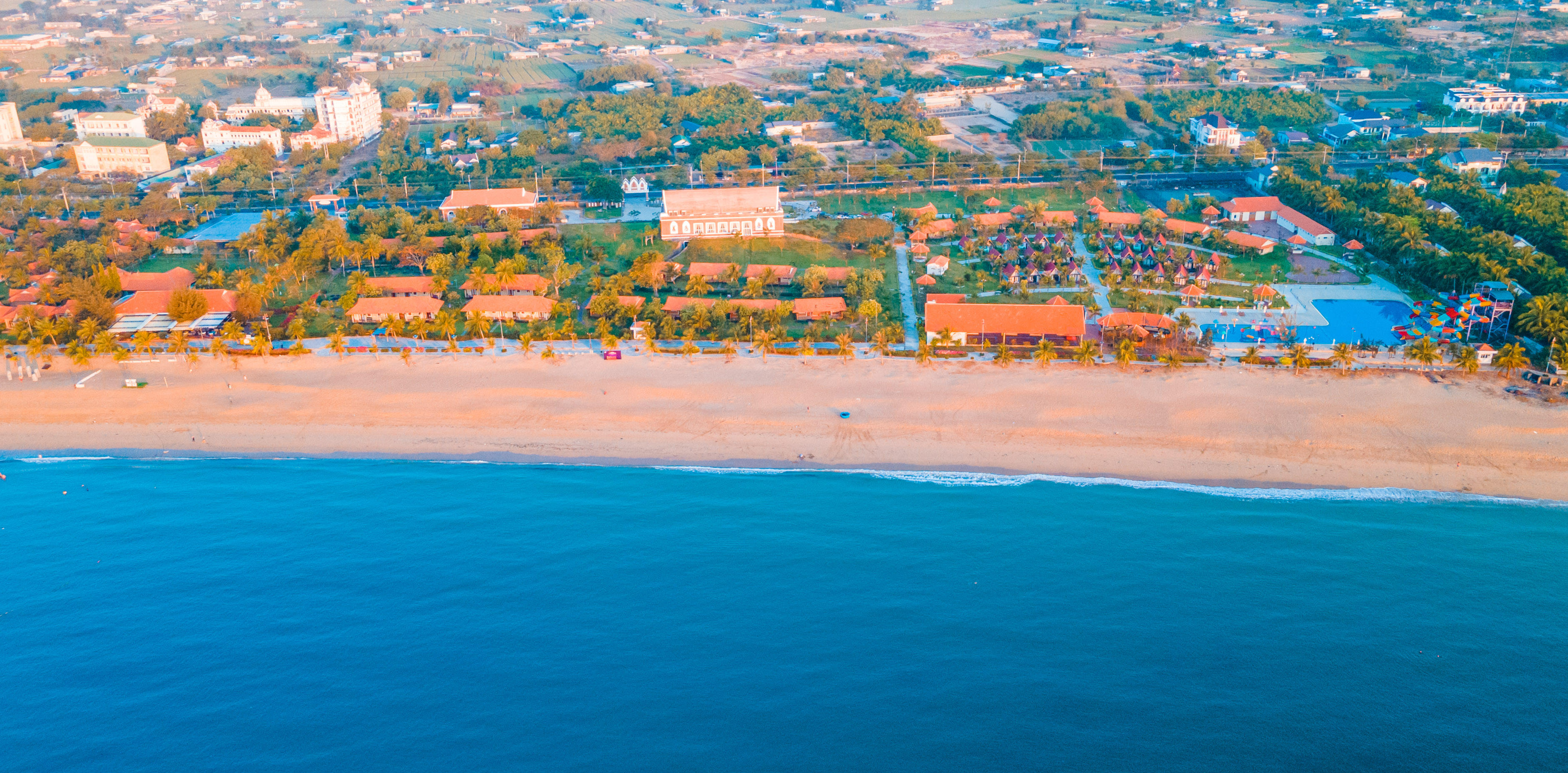 Nếu TTC Van Phong Bay Resort tọa lạc bên bãi biển Dốc Lết đẹp nhất nhì Việt Nam, sở hữu rừng phượng rộng trên 3,5 hecta và vườn thú tương tác Tiny Zoo, không gian nhà hàng mở cho đêm gala buffet mừng đại lễ hoành tráng, thì TTC Resort - Ninh Thuận sẽ làm hài lòng du khách với biệt thự phong cách Chăm hay bungalow gỗ xinh xắn và công viên nước tầm nhìn biển duy nhất tại Ninh Thuận.