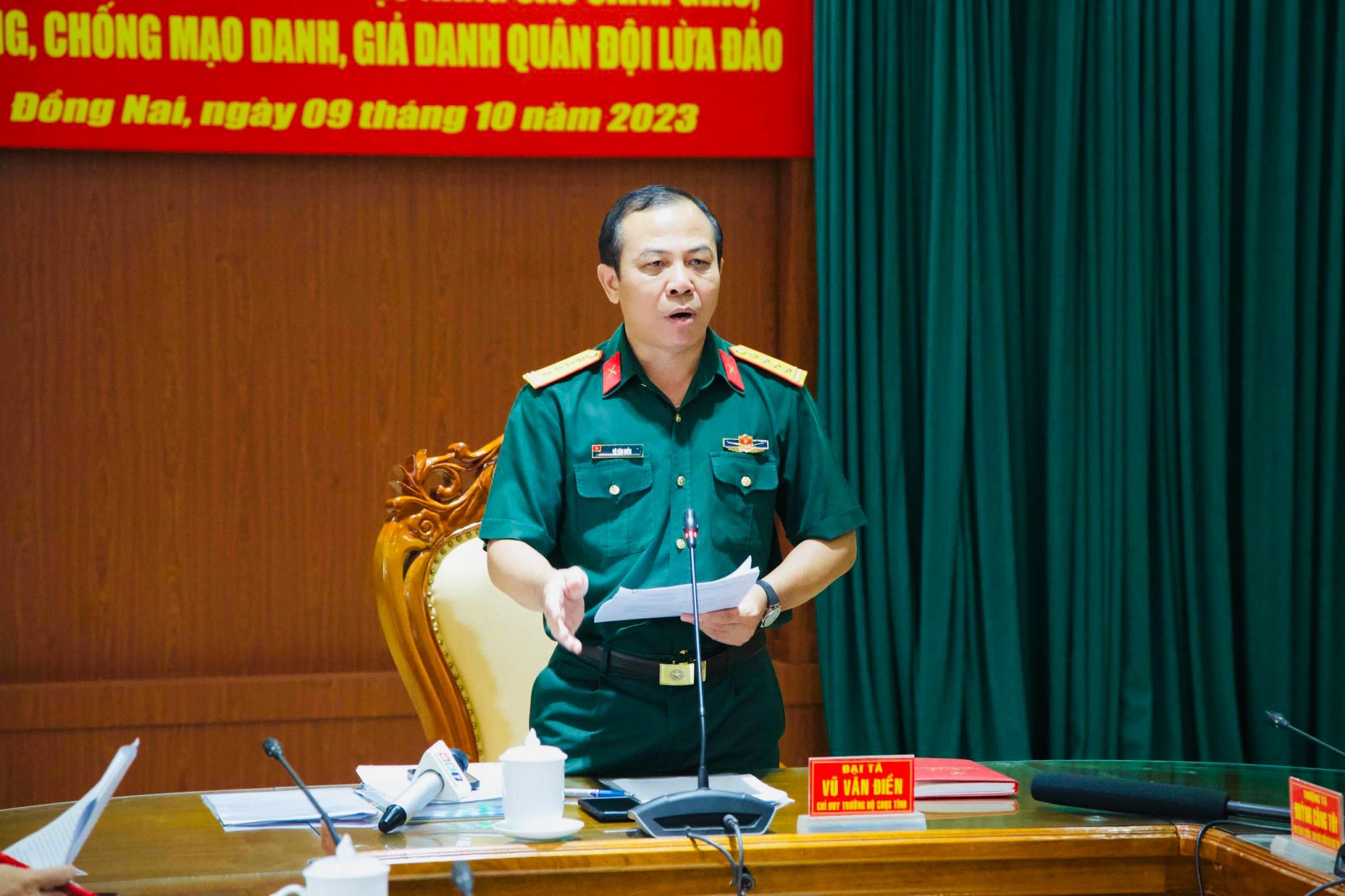 Chiều 9/10, Bộ Chỉ huy Quân sự tỉnh Đồng Nai đã tổ chức Hội nghị Trao đổi thông tin về việc nâng cao cảnh giác, phòng, chống mạo danh, giả danh quân đội lừa đảo.