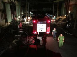 Lực lượng chức năng nhanh chóng huy động hàng chục chiến sĩ cùng phương tiện chữa cháy đến hiện trường phun nước dập lửa.