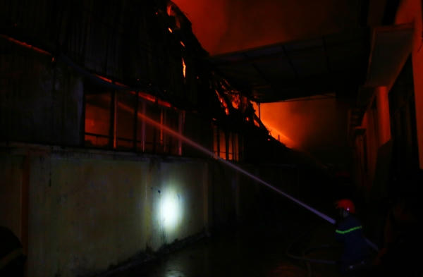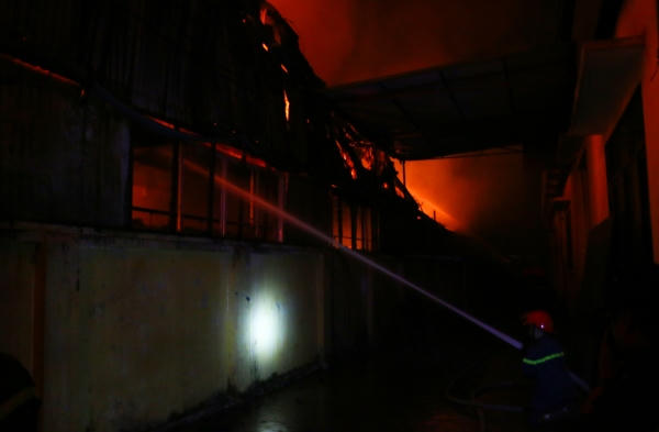 Đến khoảng 23h50, đám cháy cơ bản bị khống chế. Toàn bộ kết cấu bên trong của khu xưởng đã đổ sập hoàn toàn. Rất may không có thiệt hại về người.