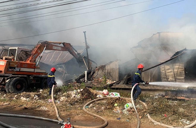 Khoảng 12h30 ngày 7/1, tại công ty gỗ bất ngờ bốc cháy thiêu rụi nhà xưởng hơn 3.000m2. Do bên trong xưởng có nhiều vậy dụng dễ cháy như gỗ và hoá chất nên ngọn lửa nhanh chóng lan rộng.