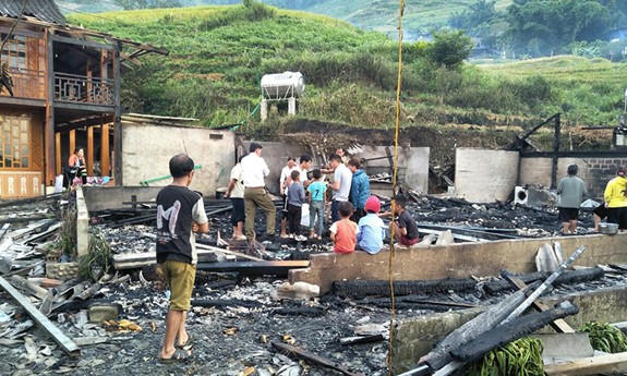 Thông tin ban đầu, rạng sáng 29/8, lửa bùng lên tại 3 căn nhà ở thôn Bản Pho, xã Mường Hoa (thị xã Sa Pa, tỉnh Lào Cai)