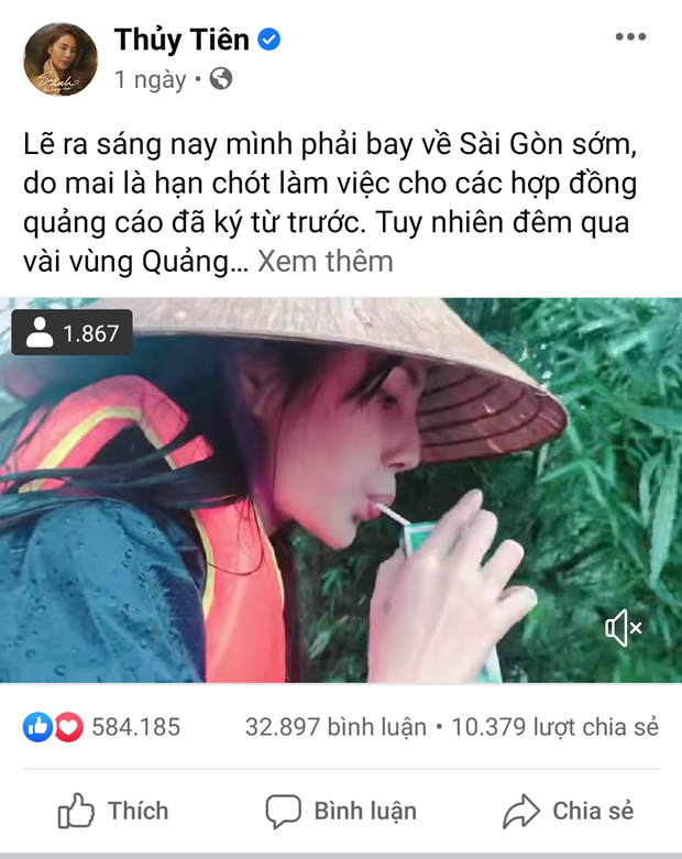 Trước sự việc này, Thủy Tiên vô cùng bức xúc. Cô đăng tải bài viết cảnh cáo đồng thời nhắc nhở người hâm mộ, bạn bè và các Mạnh Thường Quân không bị kẻ xấu lợi dụng. Cô cho biết, khi về, cô sẽ giải quyết triệt để sự việc thậm chí nhờ đến công an để giải quyết.