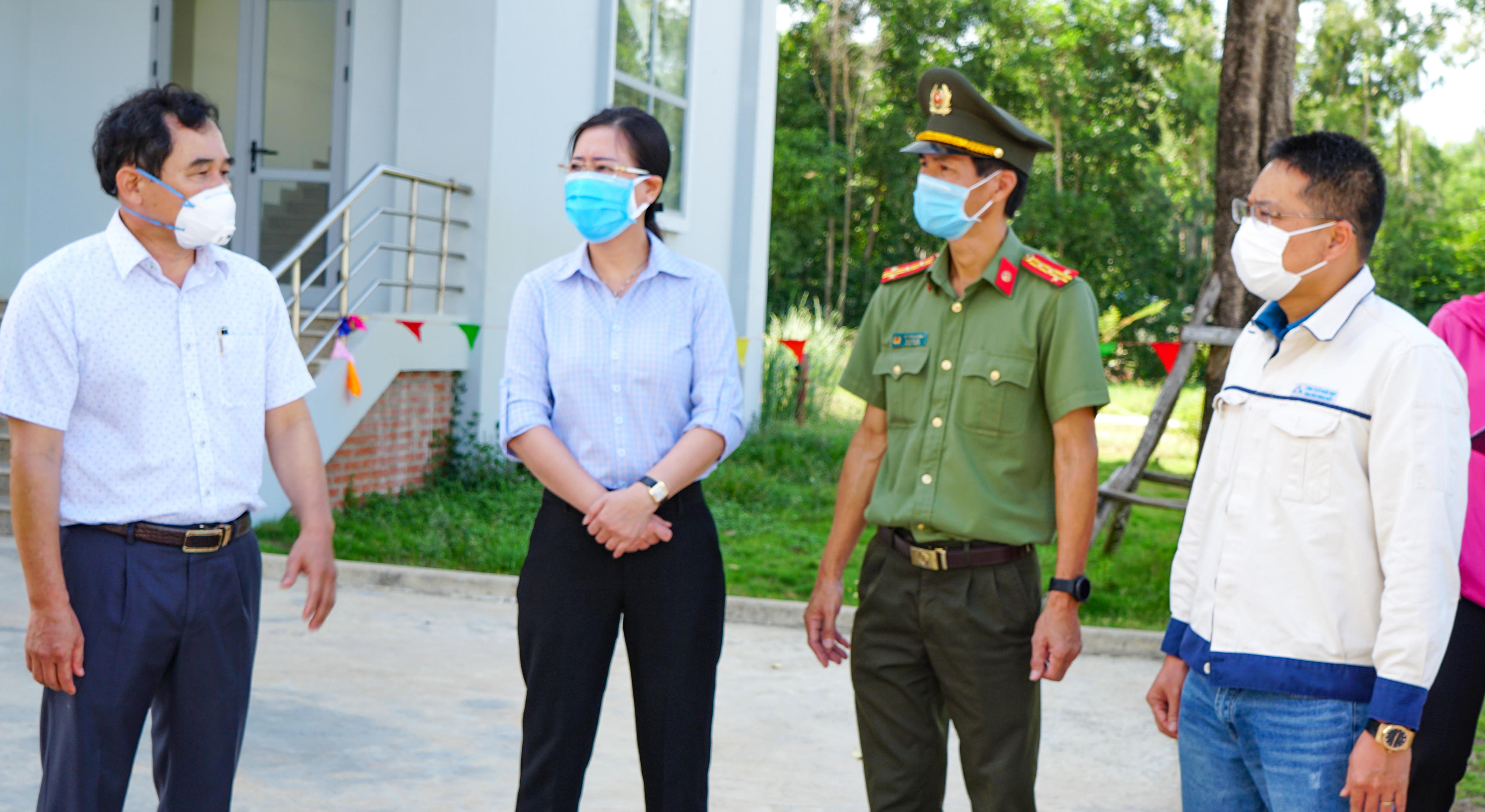 Đại tá Võ Văn Dương – Phó Giám đốc Công an tỉnh (thứ 2 từ phải qua) cùng lãnh đạo tỉnh Quảng Ngãi kiểm tra công tác phòng, chống dịch COVID-19 tại Hoà Phát - Dung Quất (Ảnh chụp ngày 19/8/2020). |
