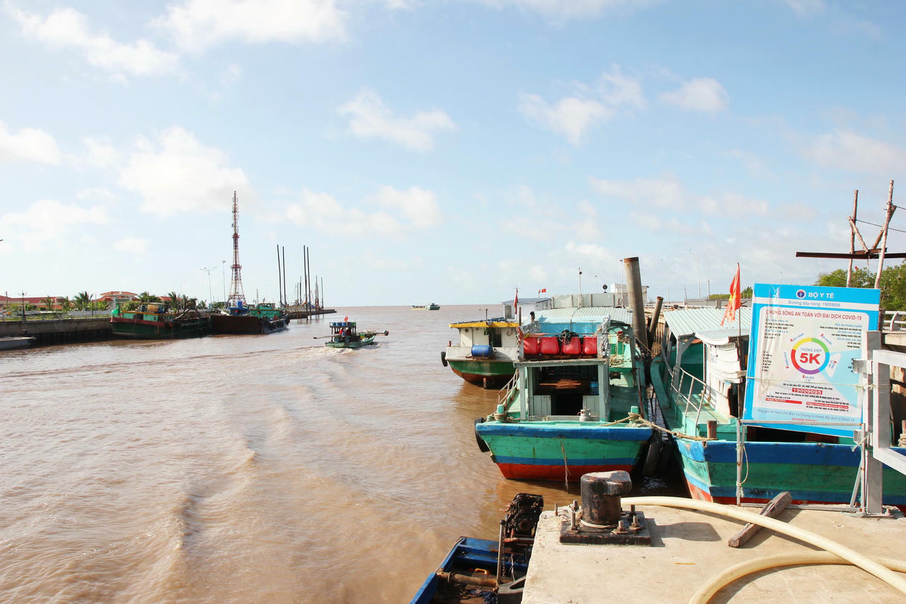 Cửa biển Nhà Mát (TP Bạc Liêu), mỗi ngày có đông ngư dân hoạt động khai thác thủy sản ra vào, được lực lượng Biên phòng kiểm soát chặt chẽ. |