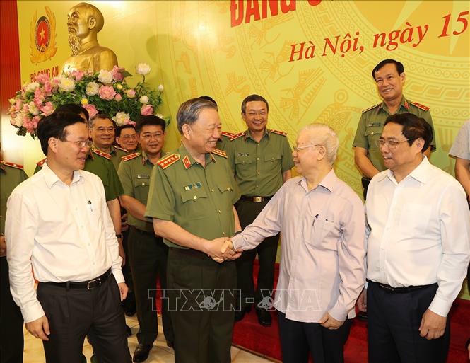 Tổng Bí thư Nguyễn Phú Trọng đánh giá rất cao tinh thần đổi mới, dám nghĩ, dám làm, dám chịu trách nhiệm trước Đảng, trước nhân dân của Đảng ủy Công an Trung ương, Bộ Công an trong lãnh đạo, chỉ đạo triển khai nhiệm vụ chính trị. Một số nhiệm vụ thuộc trách nhiệm của lực lượng Công an và một số nhiệm vụ khác giao cho lực lượng Công an chủ trì được thể hiện với tầm cỡ, mức độ chính trị cao hơn, vai trò, mức độ tác động, ảnh hưởng lớn hơn, vượt ngoài phạm vi thông thường của công tác công an so với những năm trước đây.