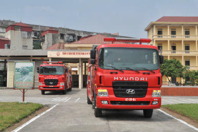 | Đại đội đã được trang bị nhiều phương tiện chữa cháy hiện đại như: xe cứu hỏa, quần áo tráng bạc cách nhiệt, chống cháy |