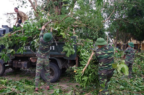 Bộ CHQS tỉnh Hà Tĩnh cũng điều 90 cán bộ, chiến sĩ phối hợp với Trung đoàn 335, Sư đoàn 324 cơ động khắc phục hậu quả bão nhanh nhất có thể. Lực lượng sẽ ở lại Hà Tĩnh 4 - 5 ngày phối hợp cùng lực lượng sở tại đến nhà từng hộ dân bị thiệt hại nặng để hỗ trợ dọn dẹp, sửa chữa sớm ổn định cuộc sống.