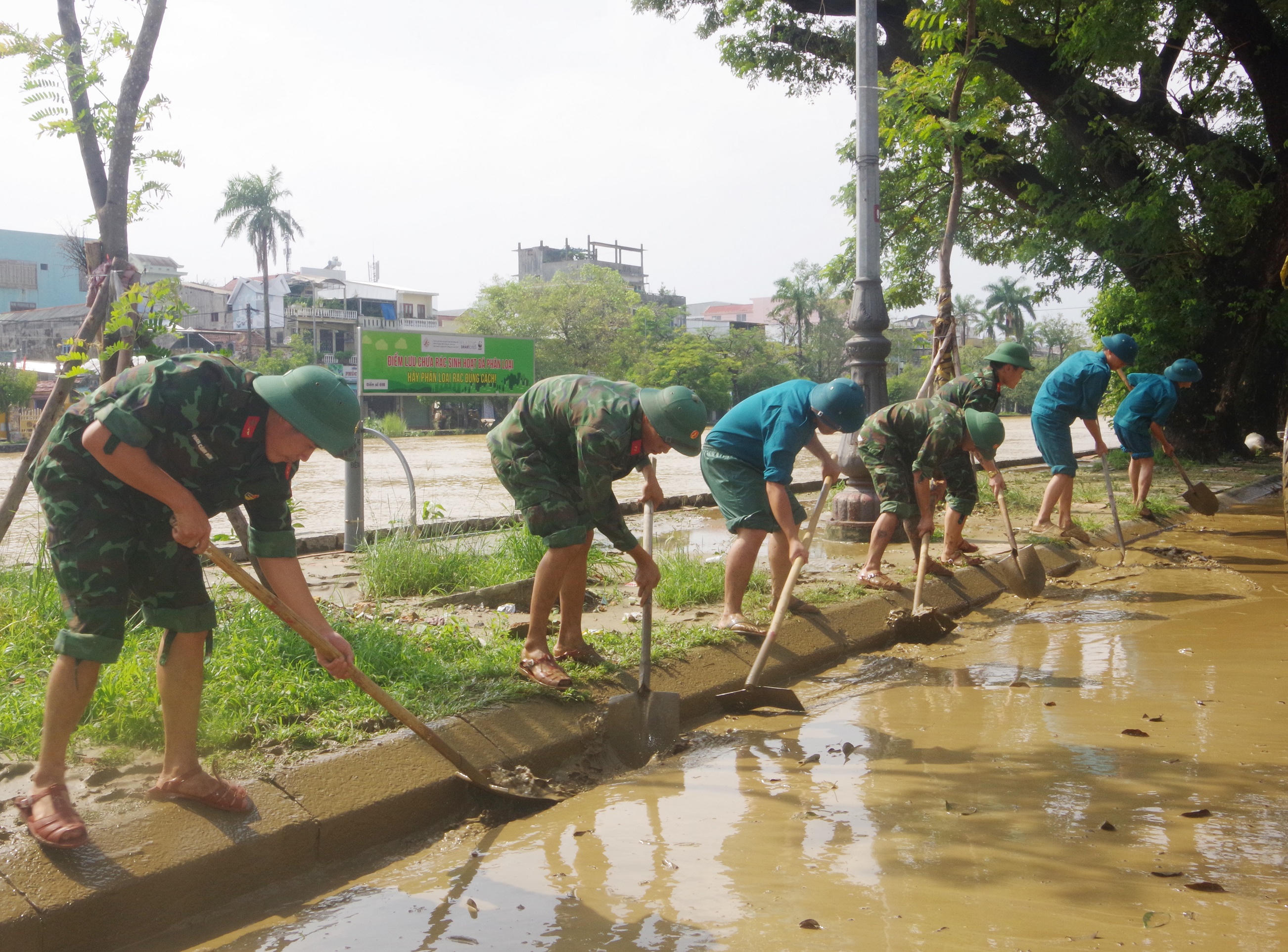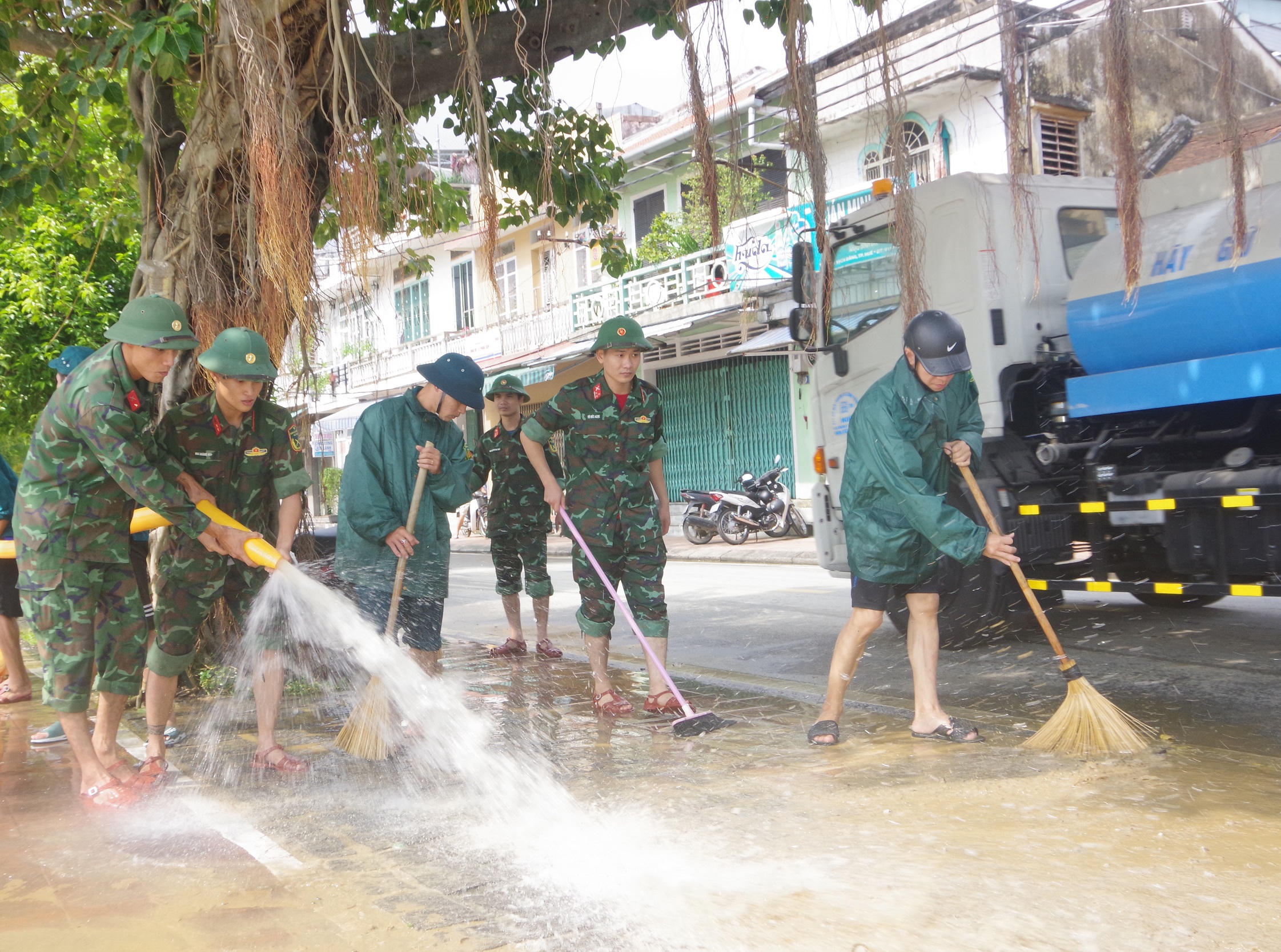 (PLVN) - Chiều 16/10, Bộ Chỉ huy quân sự (CHQS) tỉnh Thừa Thiên Huế đã huy động trên 200 cán bộ, chiến sĩ cùng với các lực lượng tại chỗ tham gia dọn dẹp vệ sinh bùn đất ở nhiều tuyến đường trên địa bàn TP Huế.