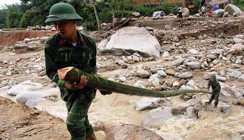 Bộ đội dựng lại nhà giúp người dân và thông tuyến giao thông liên xã