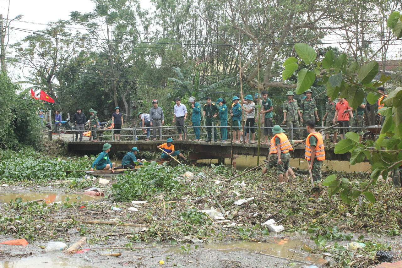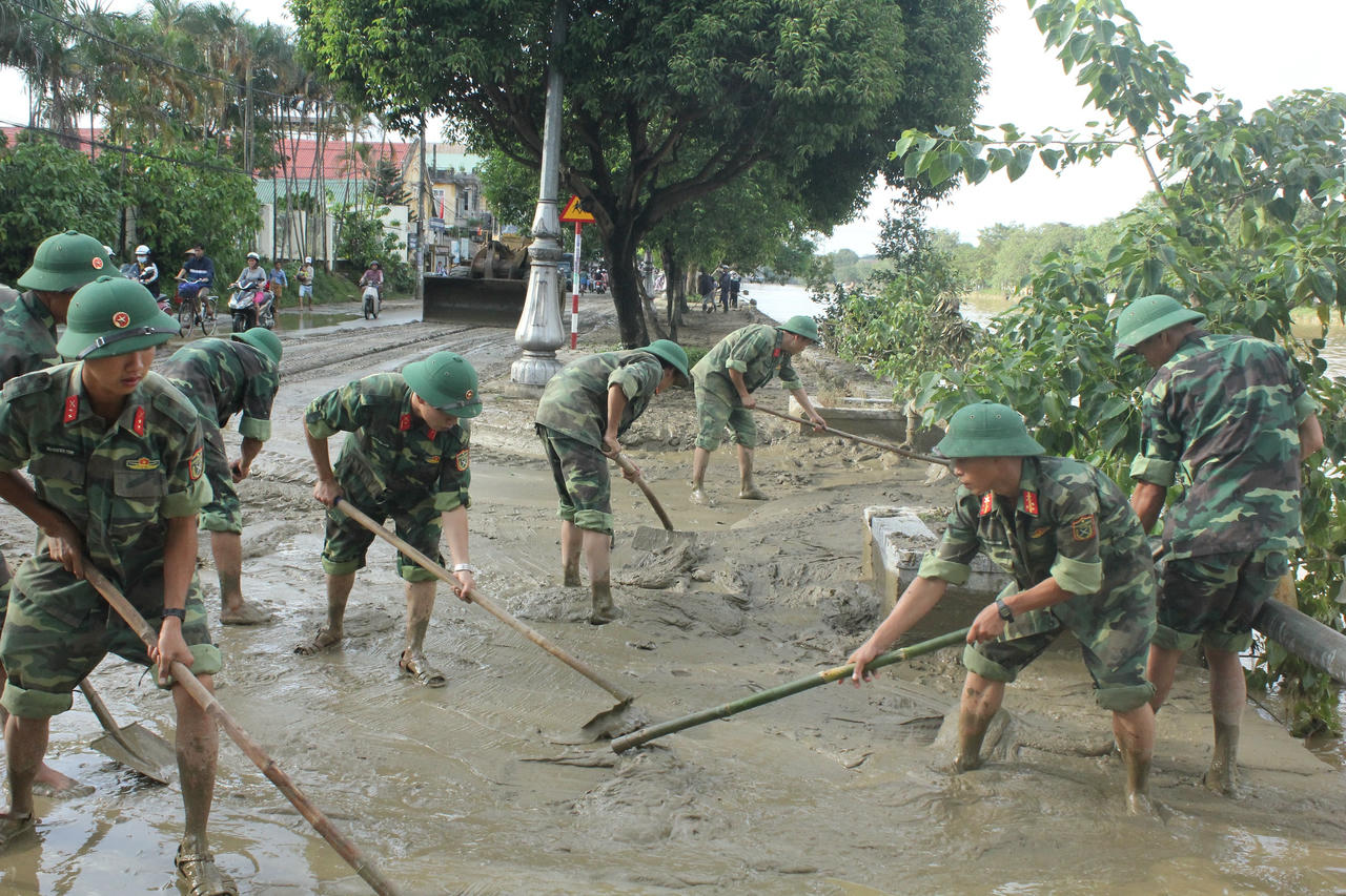 Những ngày vừa qua, hàng trăm lượt cán bộ, chiến sĩ lực lượng vũ trang tỉnh và các đơn vị vẫn luôn túc trực ngày đêm, sẵn sàng tham gia phòng chống sạt lở bờ biển, sạt lở núi, các tuyến đê, giúp các hộ dân di chuyển tài sản ra khỏi vùng nguy hiểm. Tổng dọn vệ sinh các tuyến đường, trường học, trạm xá, tích cực, khẩn trương dọn dẹp cây xanh, vệ sinh môi trường, khơi thông dòng chảy, xử lý nguồn nước sinh hoạt, phun thuốc, hóa chất xử lý những nơi ngập úng, nguy cơ gây bệnh cao để tiêu độc, khử trùng, không để dịch bệnh phát sinh.