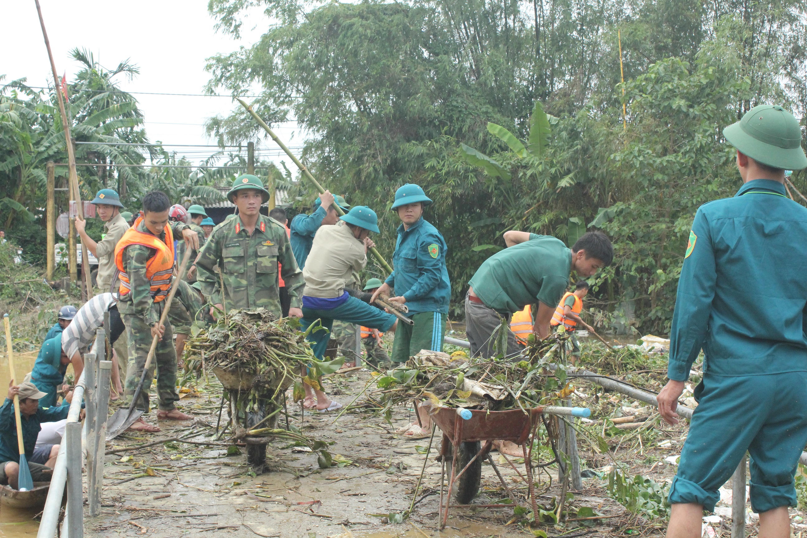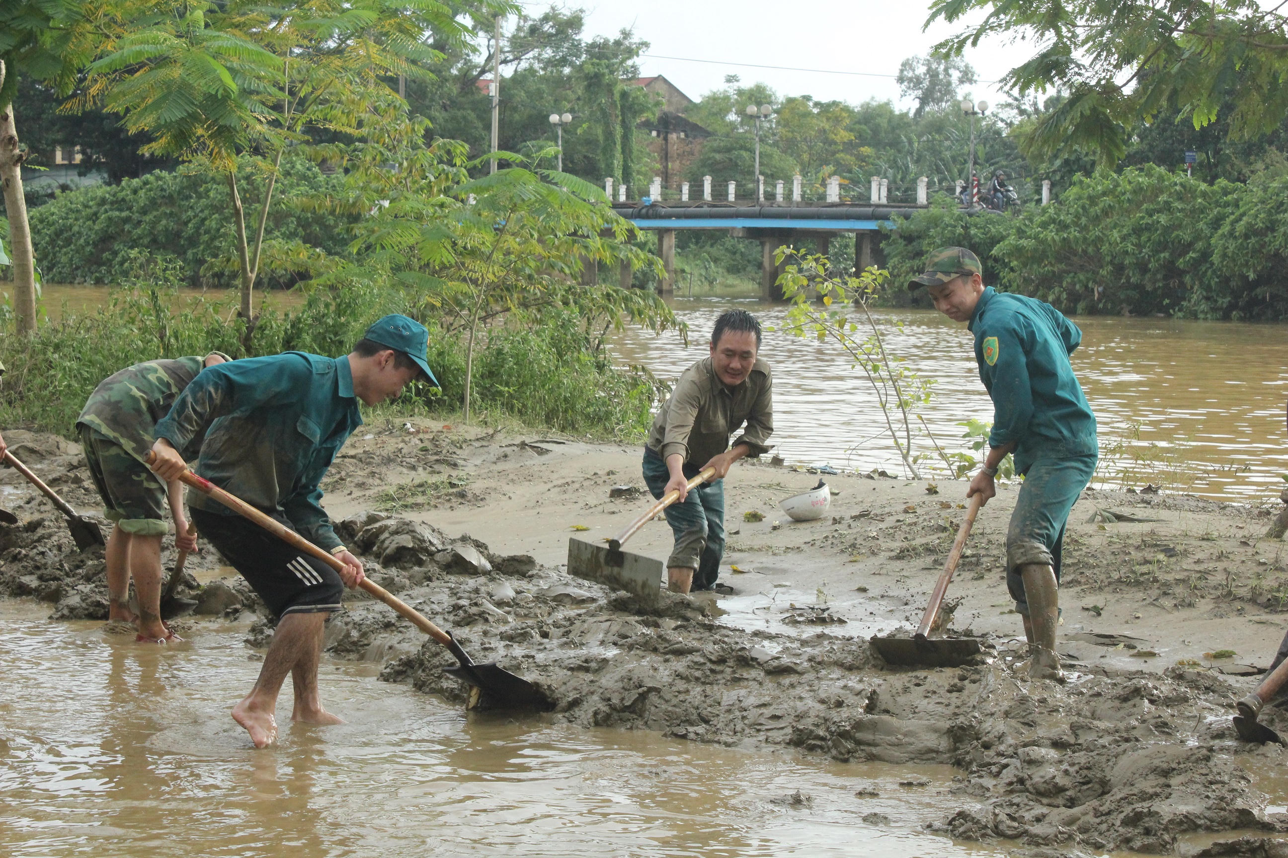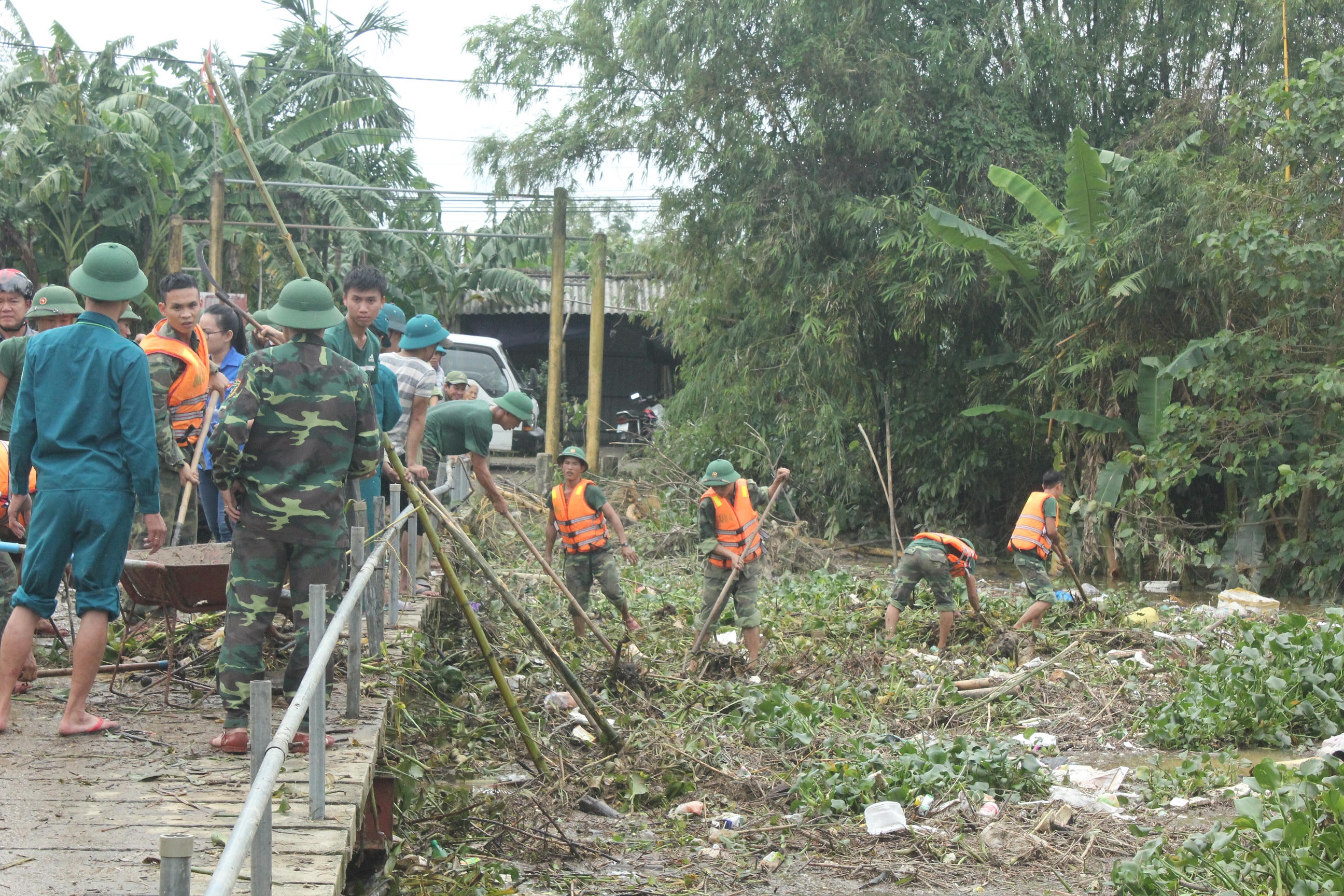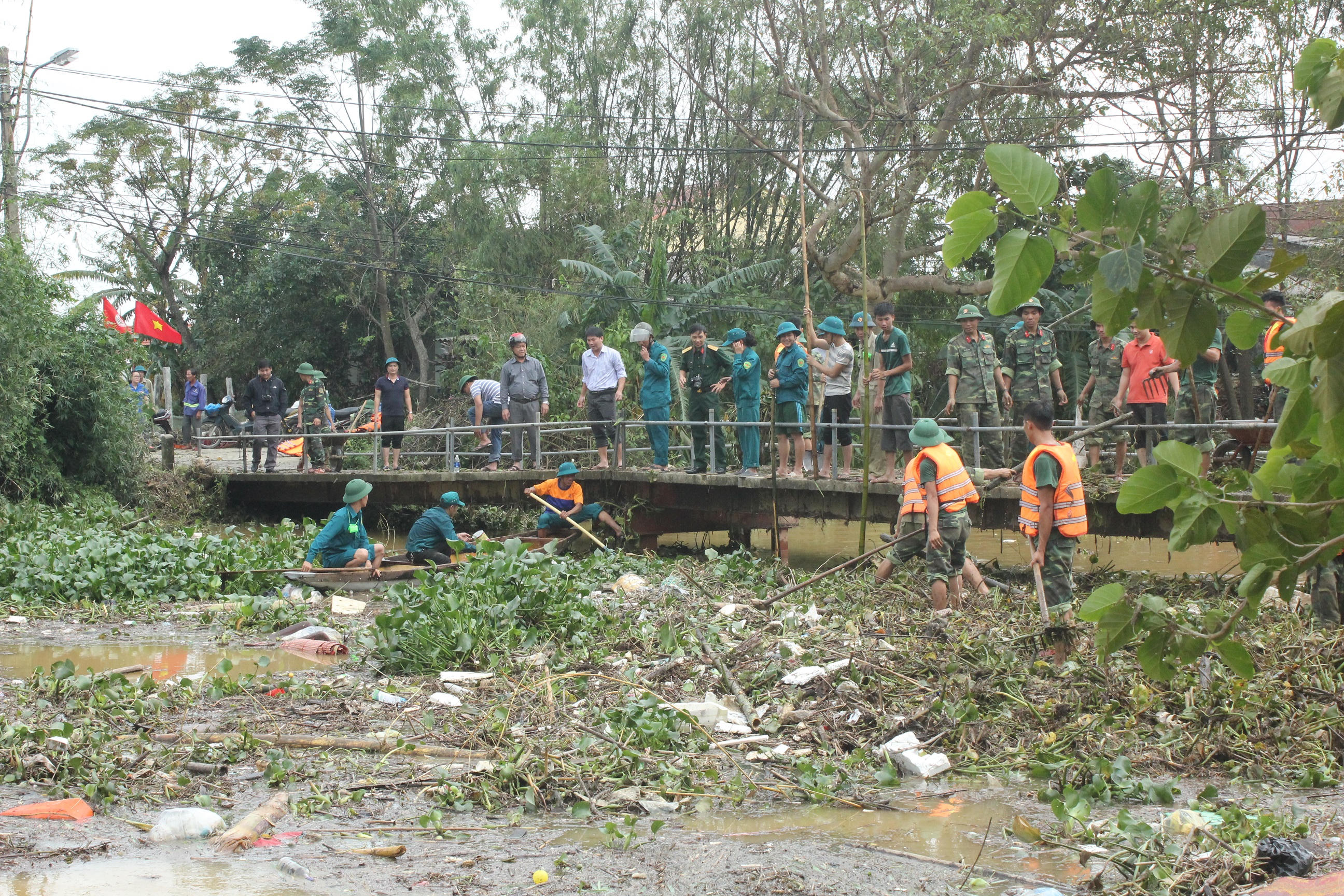 Tại tổ 1, khu vực 1, phường An Đông, Thành phố Huế, Tỉnh Thừa Thiên Huế khi nước lũ đang rút dần. Tại đây, có trên 150 cán, bộ chiến sĩ Bộ chỉ huy quân sự tỉnh Thừa Thiên Huế, Sư đoàn 968 – Quân khu 4, lực lượng dân quân và bà con nhân dân Phường An Đông không quản ngại khó khăn, vất vả, nguy hiểm, tích cực, khẩn trương tổng dọn vệ sinh hàng chục tấn rác thải tấp vào Cầu Nhất Đông và Cầu Tạm, nếu không khơi thông dòng chảy kịp thời có thể nguy cơ hai chiếc cầu bị sập, nguy hiểm đến tính mạng của bà con nhân dân khi đi qua lại trên cầu.