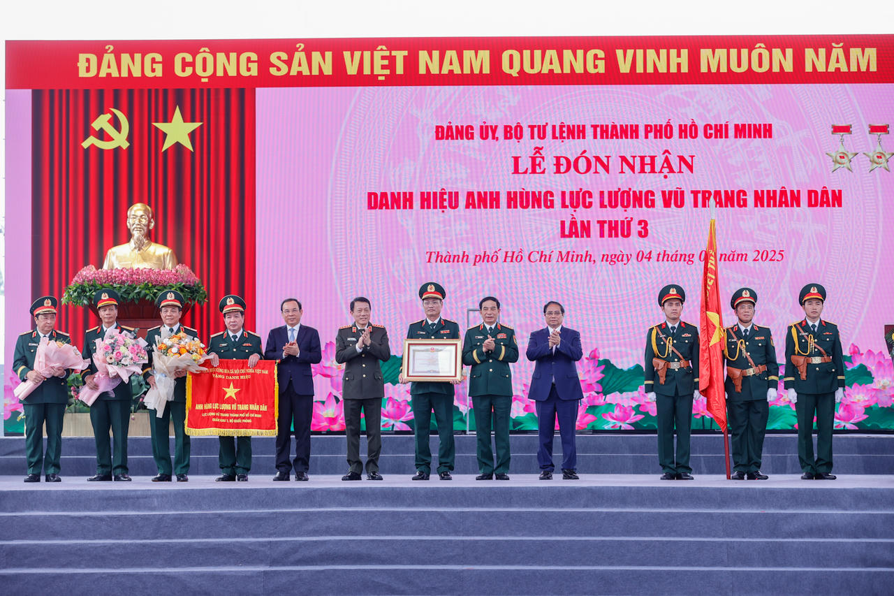 Tại buổi lễ, thừa ủy quyền của Chủ tịch nước, Thủ tướng Chính phủ Phạm Minh Chính đã trao tặng danh hiệu Anh hùng Lực lượng vũ trang nhân dân cho Lực lượng vũ trang TP HCM.