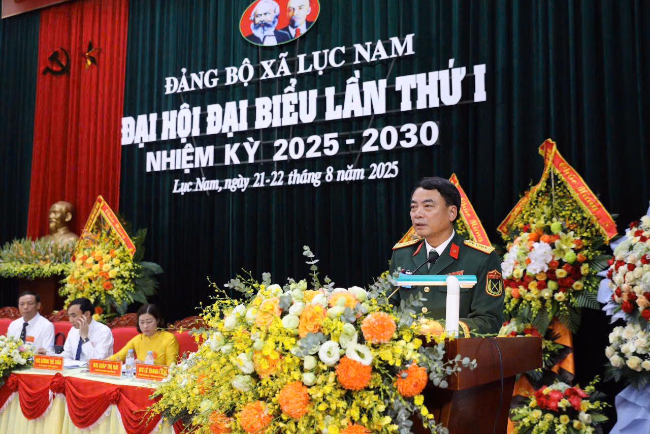 (PLVN) - Sáng 22/8/2025, tại hội trường UBND xã Lục Nam (tỉnh Bắc Ninh), Đảng bộ xã Lục Nam long trọng tổ chức Đại hội đại biểu Đảng bộ xã Lục Nam lần I, nhiệm kỳ 2025 - 2030. Đại tá Phạm Văn Tạo, Ủy viên Ban Thường vụ Tỉnh uỷ, Chỉ huy trưởng Bộ Chỉ huy quân sự tỉnh dự và chỉ đạo Đại hội.
