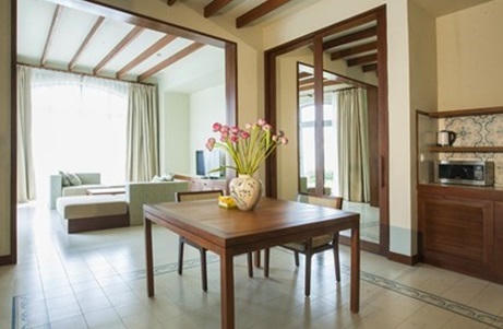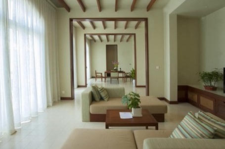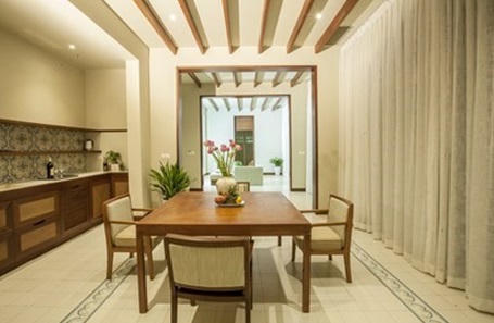 Hai phòng ngủ phía sau được thiết kế như với một căn hộ hoàn chỉnh gồm đầy đủ bàn trà, phòng ăn, khu vệ sinh. từ bất kỳ đâu, bạn cũng có thể ngắm được khu vườn xanh mát và bể bơi xinh xắn thiết kế ngay phía bên ngoài cửa kính. Mọi không gian đều được thiết kế đảm bảo tính riêng tư cao nhất