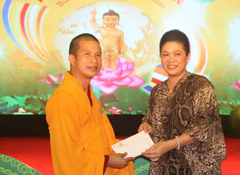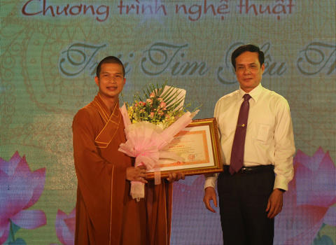 Ông Lê Bá Trình, Phó chủ tịch Ủy ban Trung Ương MTTQ Việt Nam thừa ủy quyền của Thủ tướng Chính phủ trao bằng khen cho Đại đức Thích Phước Ngọc |